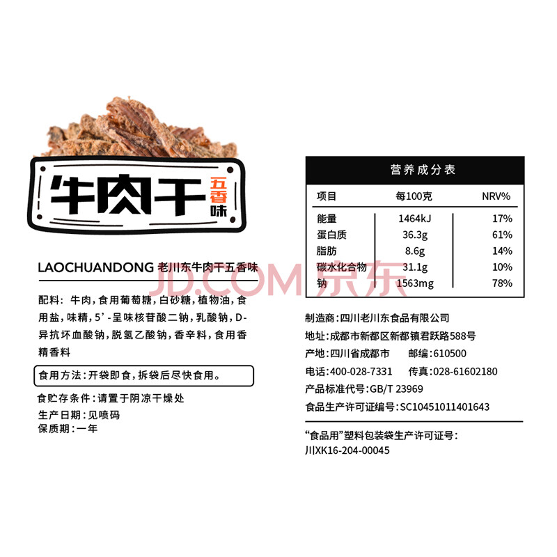 商品相册:老川东 牛肉干 五香味100g 休闲零食 四川特产小吃 肉干肉脯第