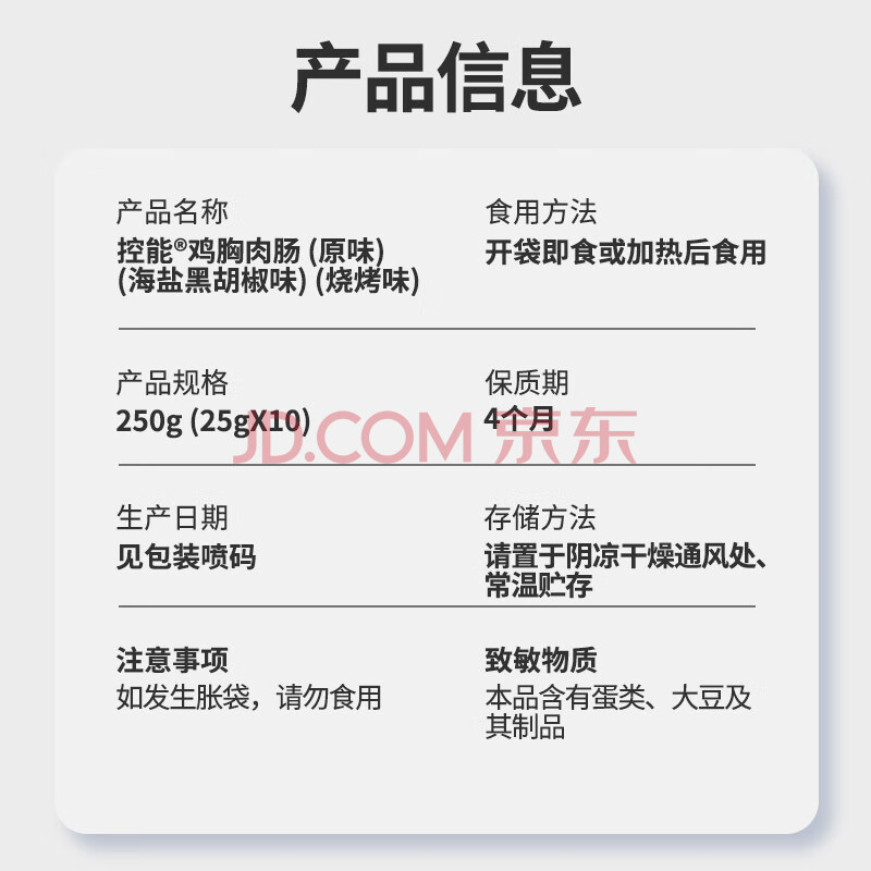 商品相册:DGI 控能低脂鸡肉肠即食高蛋白鸡胸肉健身饱腹代餐零食 原味25g*10根第