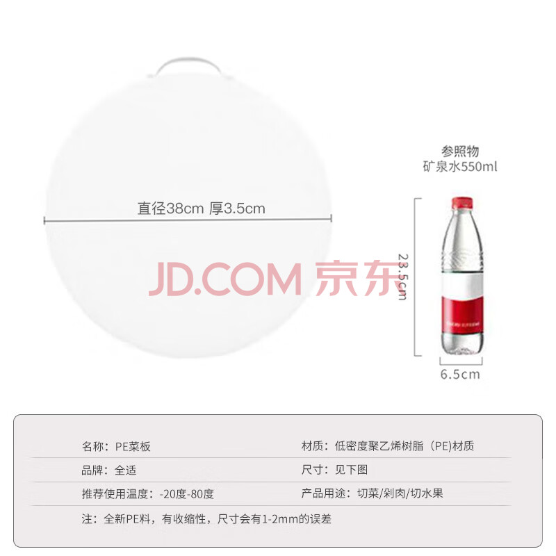 商品相册:全适38*3.5cm圆形PE切肉切菜板剁骨砧板肉墩菜墩塑料水果菜板熟食案板第