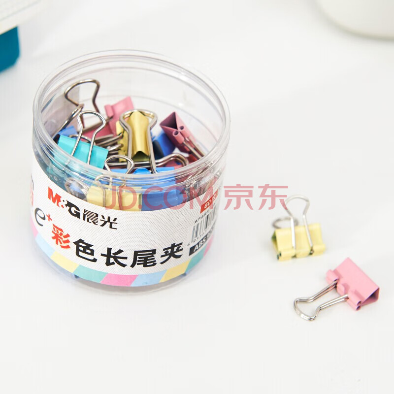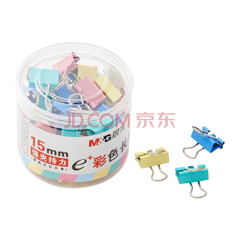 商品相册:晨光(M&G)长尾夹ABS92743文具15mm彩色长尾夹 金属票据夹 Eplus系列办公燕尾夹 60只/罐第