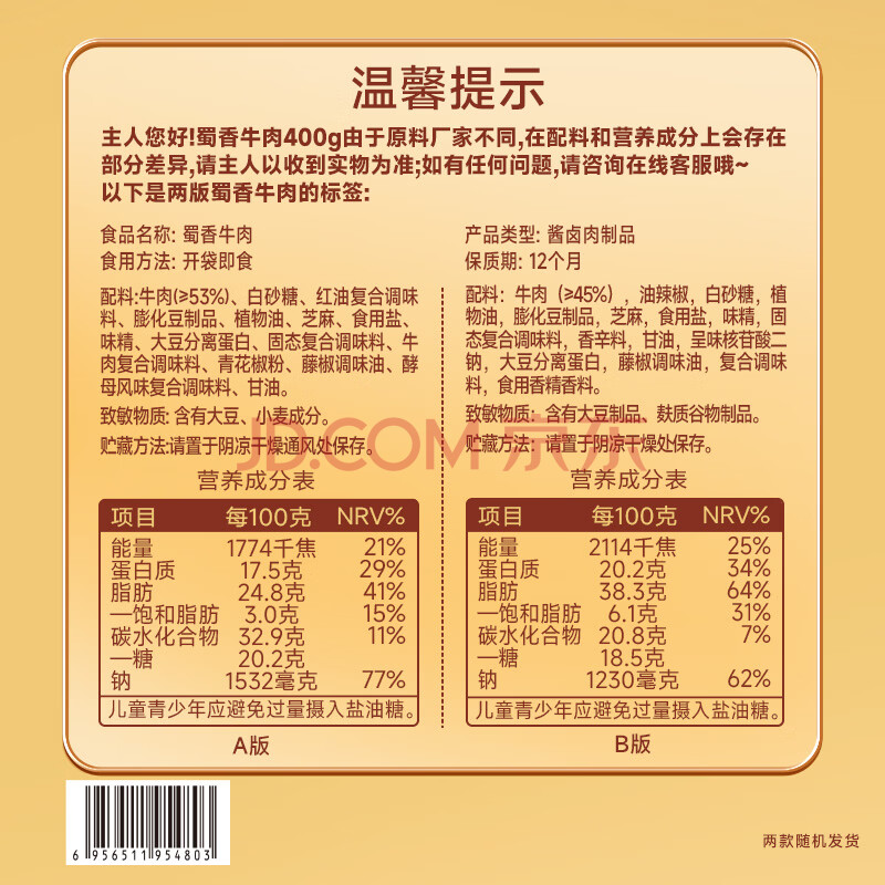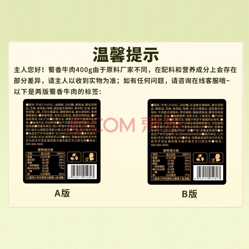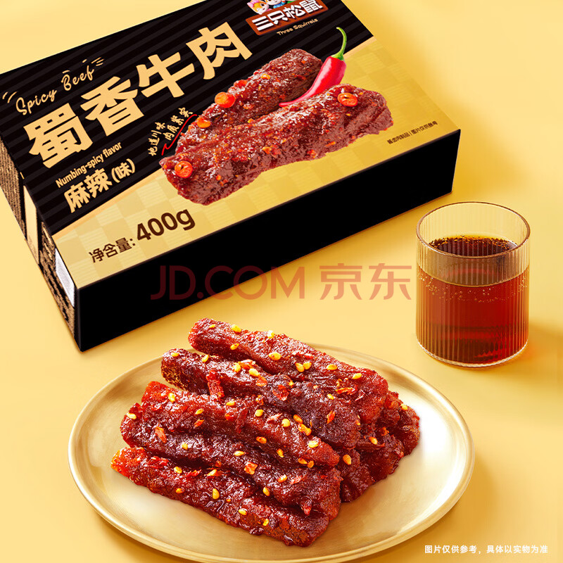 商品相册:三只松鼠蜀香牛肉麻辣味400g礼盒装四川零食混发夜宵解馋牛肉干肉脯第