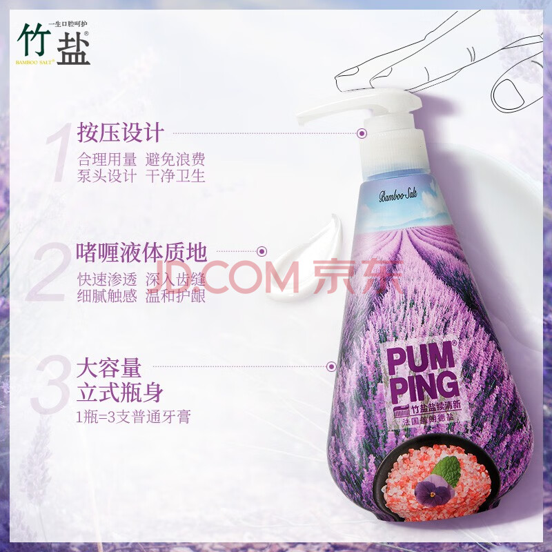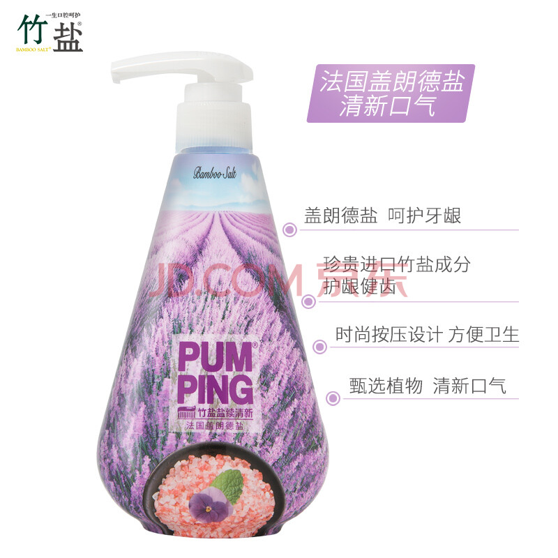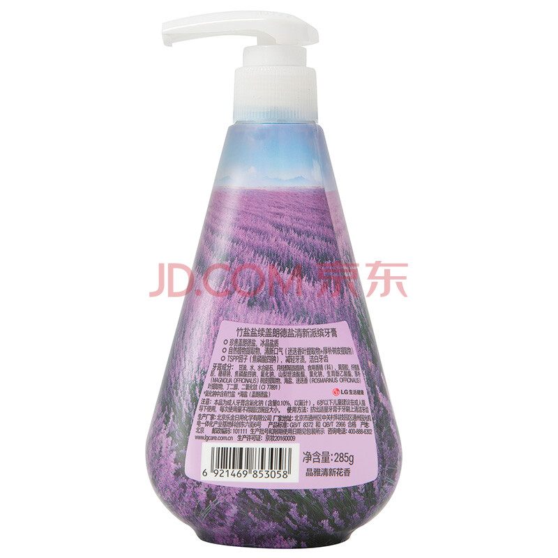 商品相册:竹盐LG派缤按压式牙膏285g*1瓶盖朗德盐清爽口感减轻牙渍清洁口腔第