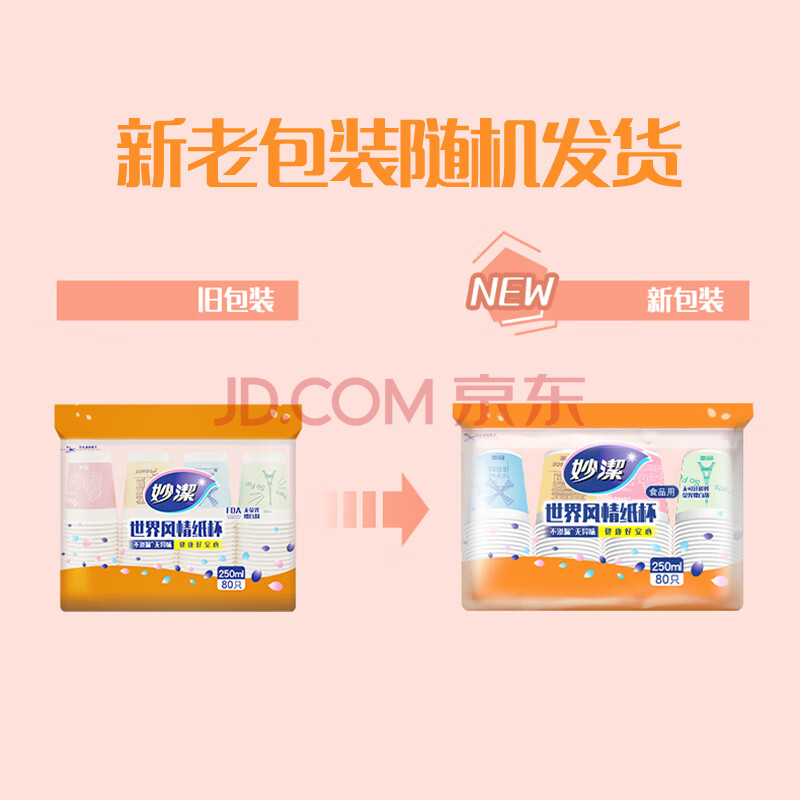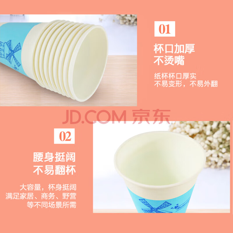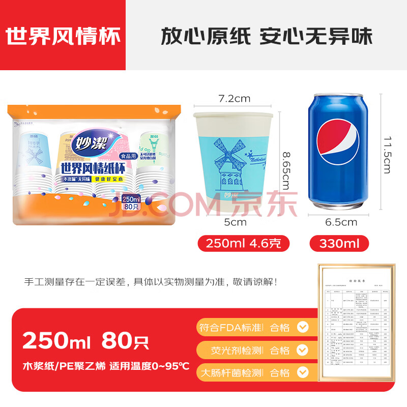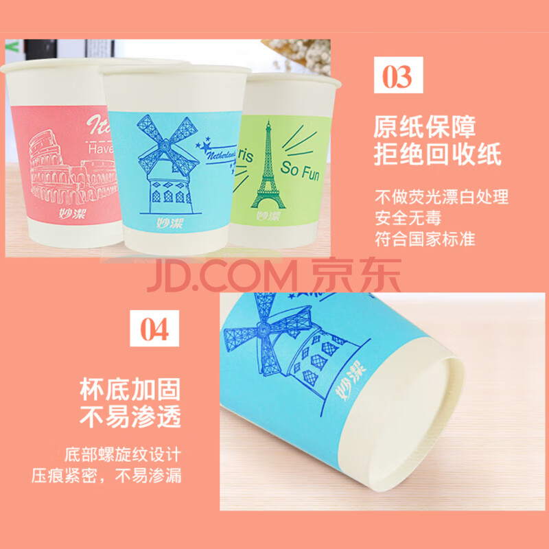 商品相册:妙洁 一次性纸杯子茶水加厚食品级商务杯 250ml*80只第