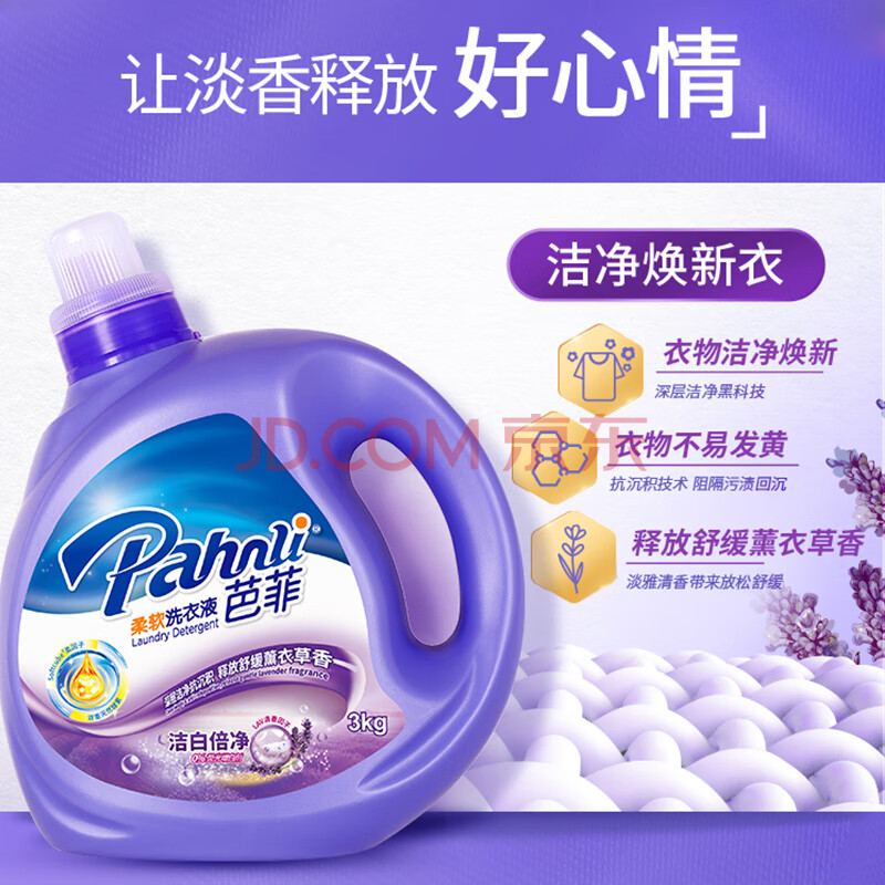 商品相册:芭菲洁白洗衣液6斤 增艳强效去污深层洁净洁白倍净配方薰衣草香第