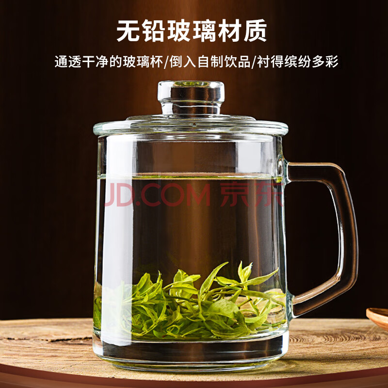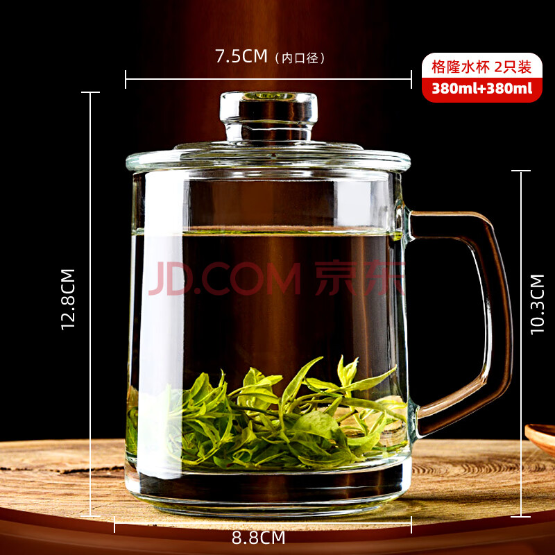 商品相册:喜碧(Scybe)茶杯耐热玻璃杯办公杯玻璃茶杯带盖把手杯玻璃水杯格隆380ml 2只第