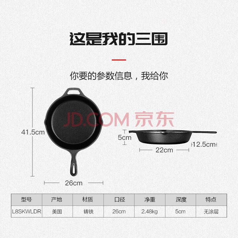 商品相册:LODGE【美国进口】26CM平底锅铸铁锅鹿底纹纪念款L8SKWLDR第