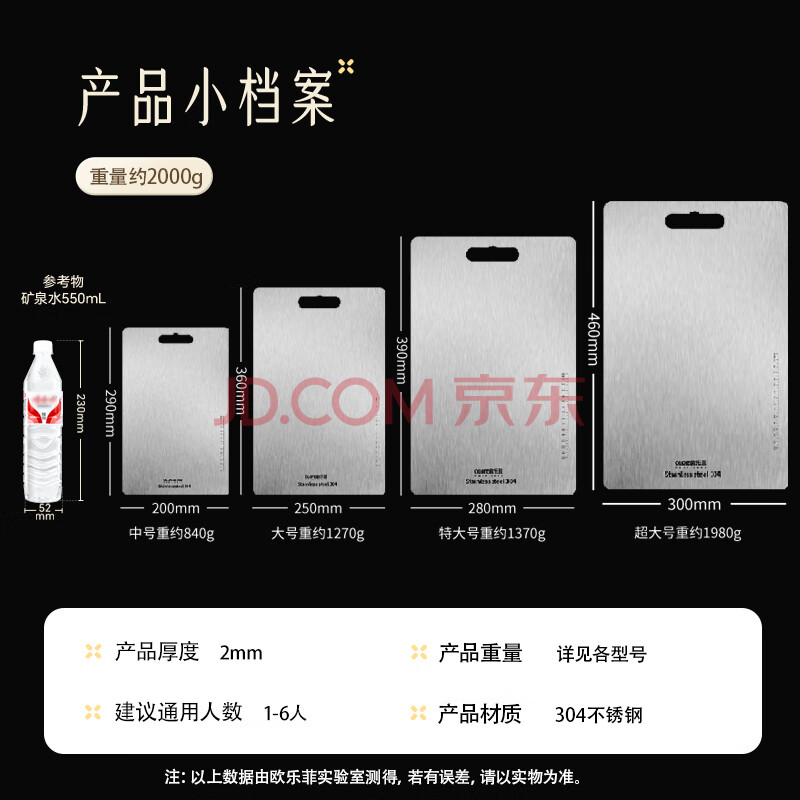 商品相册:欧乐菲(OLOFE)304不锈钢菜板子砧板切菜水果案板揉面板辅食大号25*36cm第