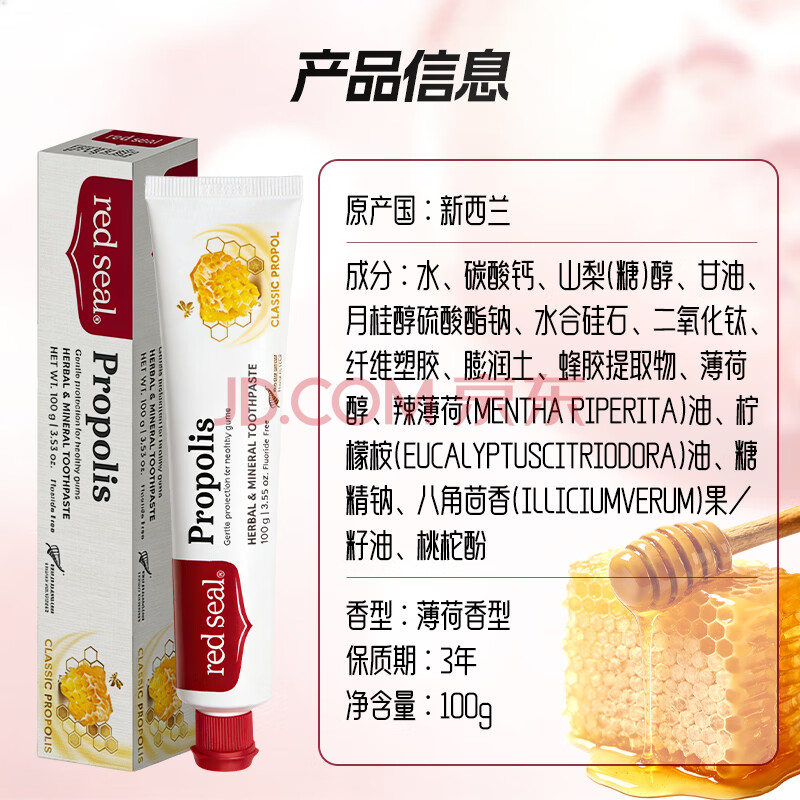 商品相册:红印(Red seal) 新西兰进口蜂胶牙膏100g 无氟牙膏 清洁口气 清洁护龈第
