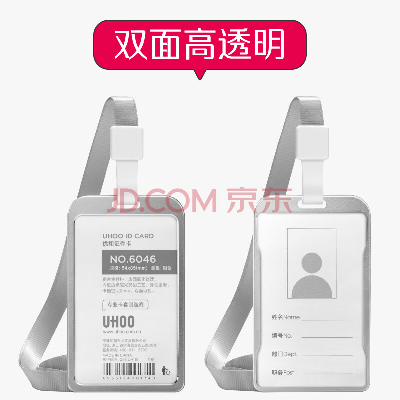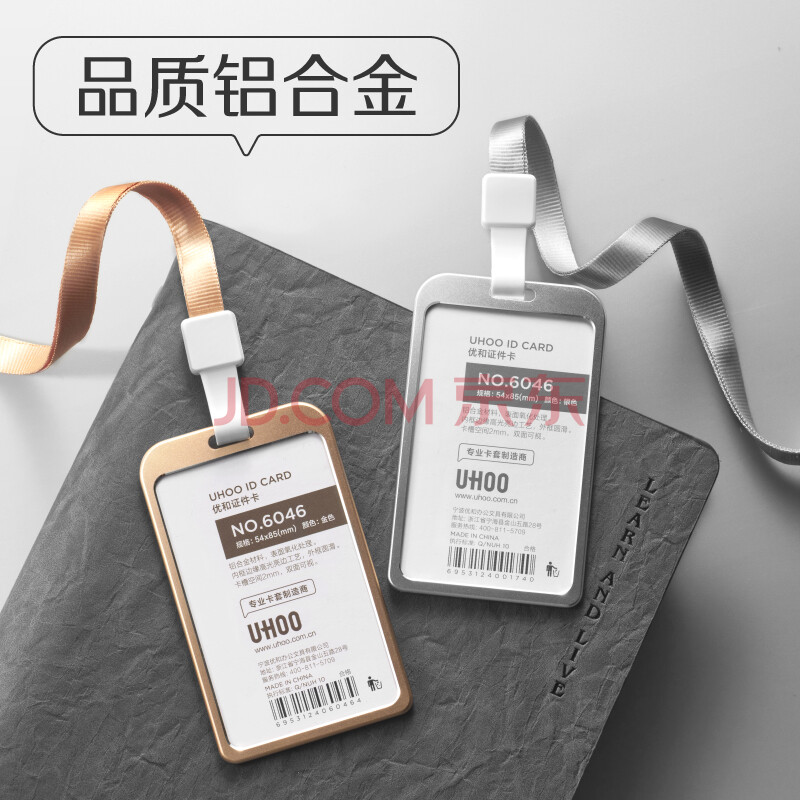 商品相册:优和(UHOO)工作牌工牌铝合金双面证件卡套 竖式 1个卡套+1根挂绳 员工金属胸牌厂牌工作证 金色 6038第