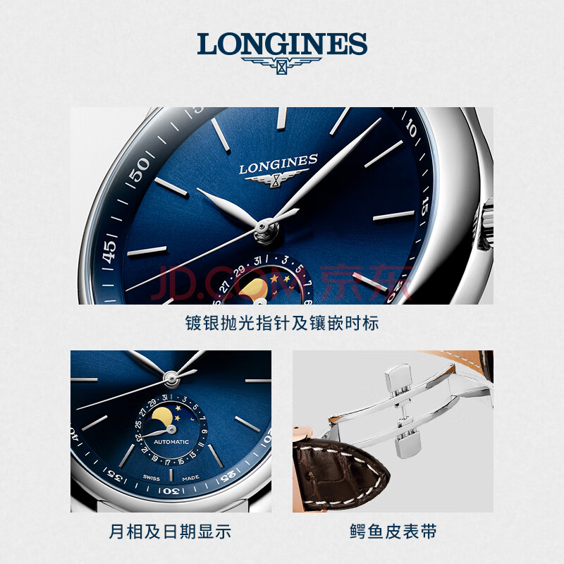 商品相册:浪琴(LONGINES)瑞士手表 名匠系列月相腕表 男士皮带机械表 L29094920第