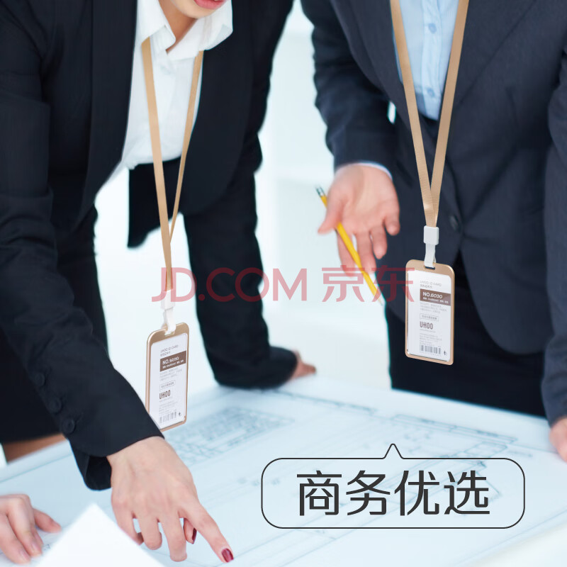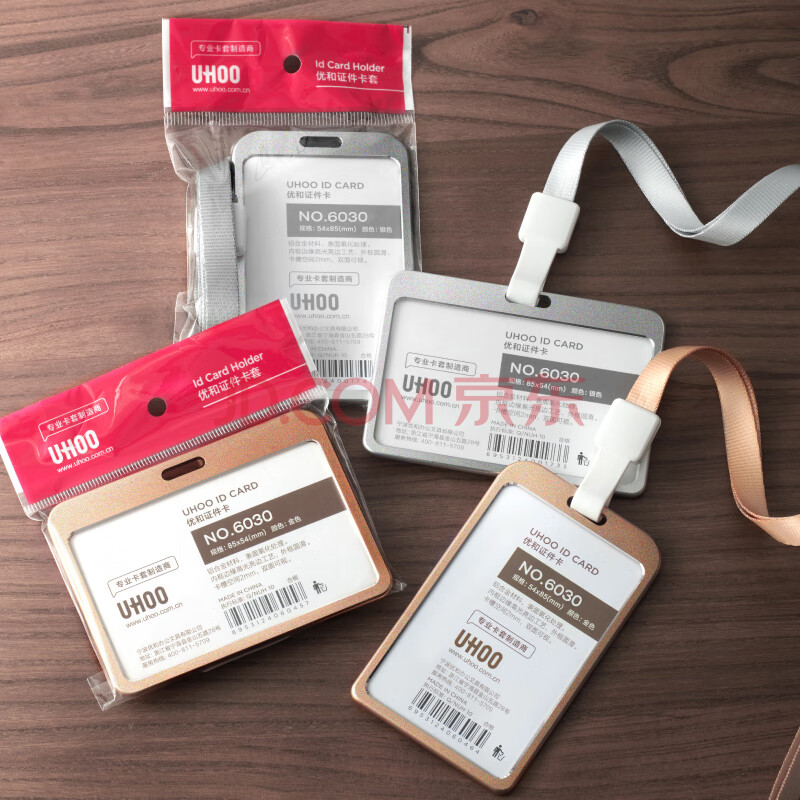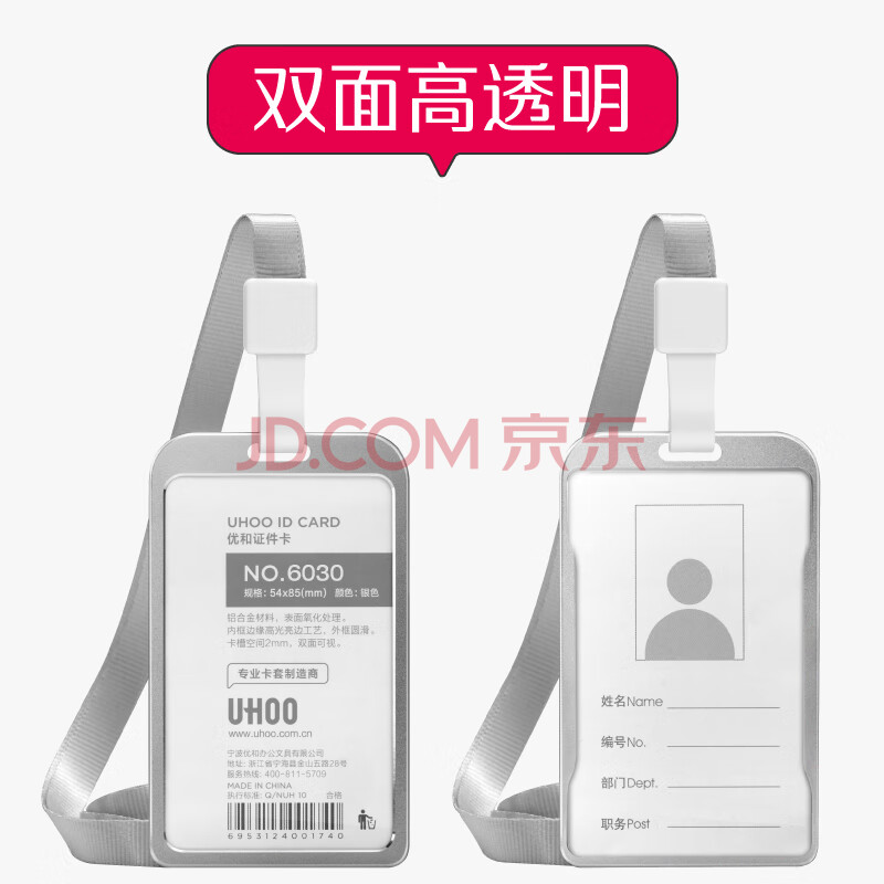 商品相册:优和(UHOO)工作牌工牌铝合金双面证件卡套 竖式 1个卡套+1根挂绳 员工金属胸牌厂牌工作证 银色 6038第