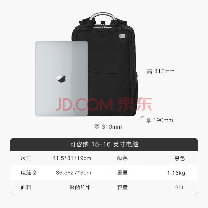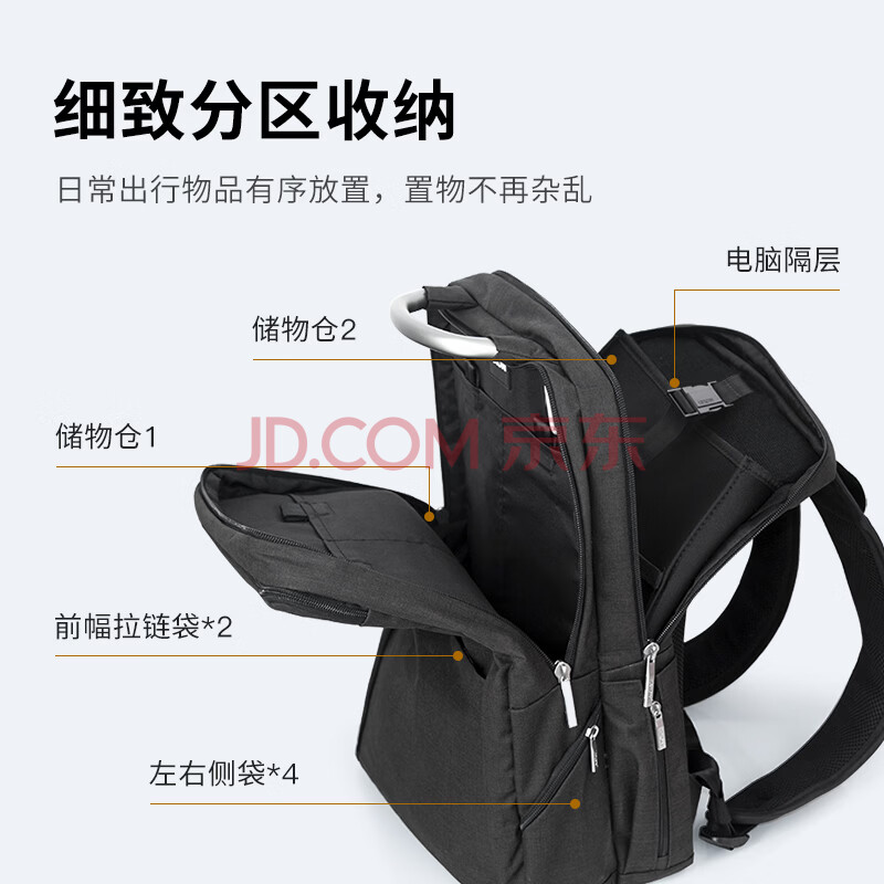 商品相册:乐上(LEXON)双肩包男士商务笔记本电脑包15.6/16英寸三层大容量书包旅行包815第