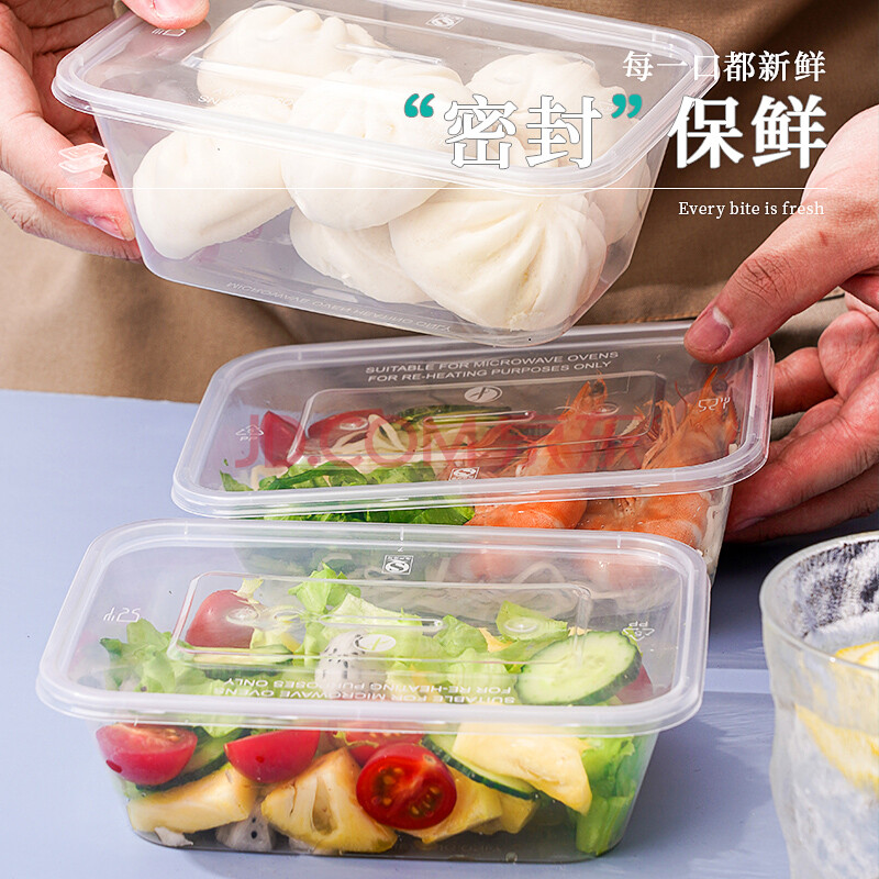 商品相册:庭好一次性饭盒长方形透明塑料快餐盒加厚带盖打包盒餐具20套1000ml第