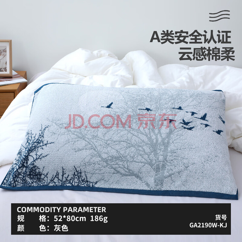 商品相册:金号 A类纯棉抗菌枕巾加大加厚枕巾单条装 优雅水墨画 防螨防霉防臭第