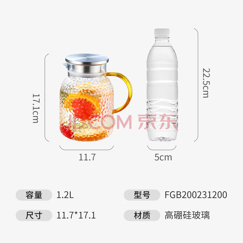 商品相册:富光耐热玻璃凉水壶大容量家用果汁杯花茶杯茶壶冷水壶锤纹壶1200ML第