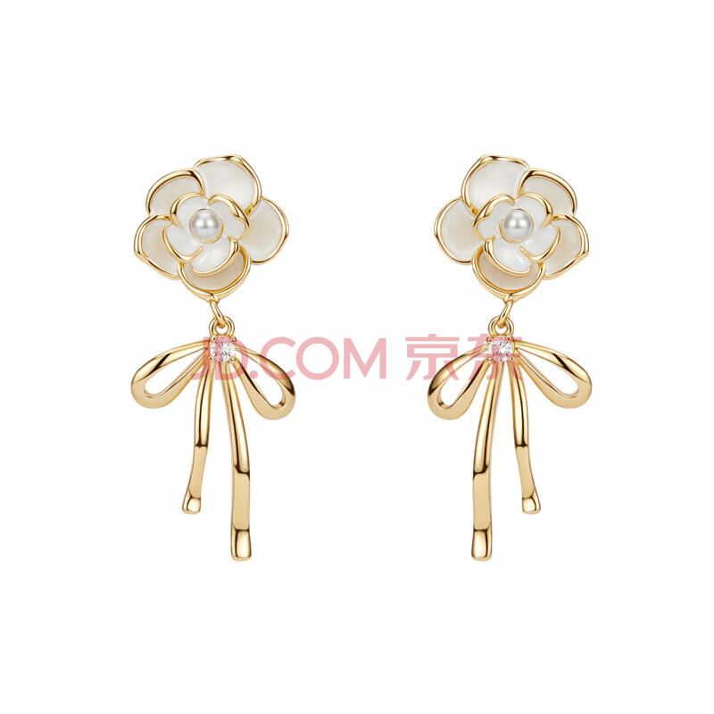 商品相册:阿吉豆耳钉山茶花系列新年礼物送女友老婆人造珍珠蝴蝶结耳环女女神节第