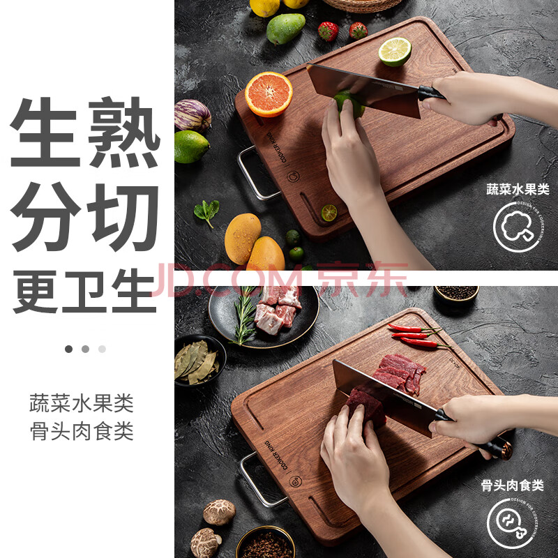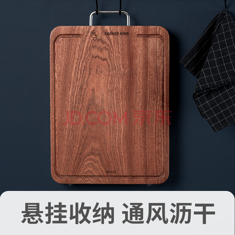 商品相册:炊大皇菜板 加厚实木乌檀木砧板可悬挂家用案板原切整木菜板40*30*3cm第