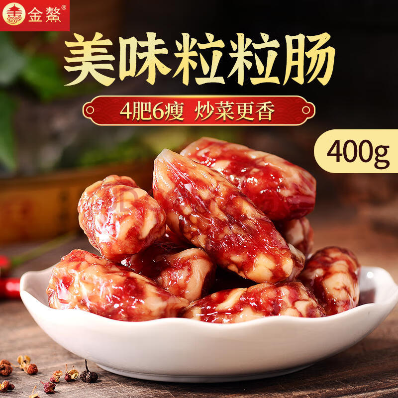 商品相册:金鳌美味粒粒肠400g 四肥六瘦 招牌特产腊肠 广东老品牌 家乡味鲜肉作第