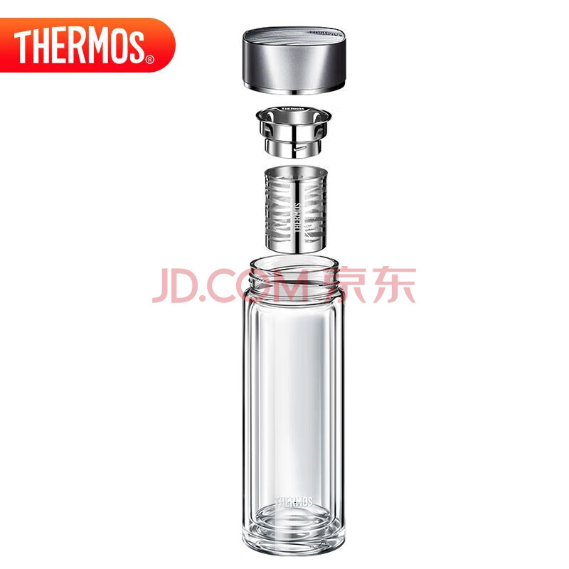 商品相册:膳魔师(THERMOS)双层玻璃400ml男女水杯茶杯水纹行者带茶漏杯TCGB-400-D-BK 黑色第