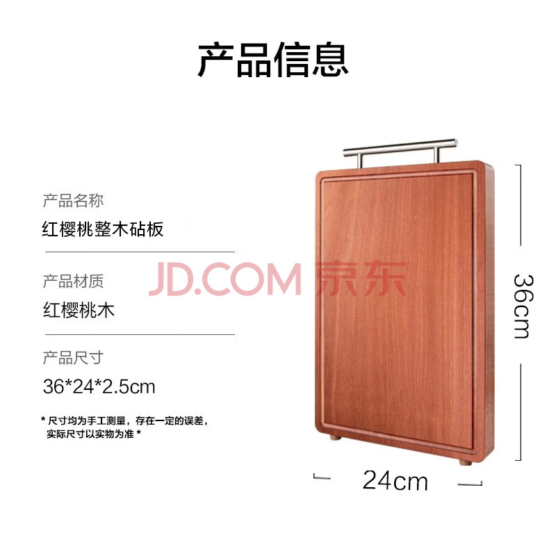 商品相册:京东京造 菜板 砧案板整木切菜板家用双面分切【百年红樱桃】36*24*2.5cm第