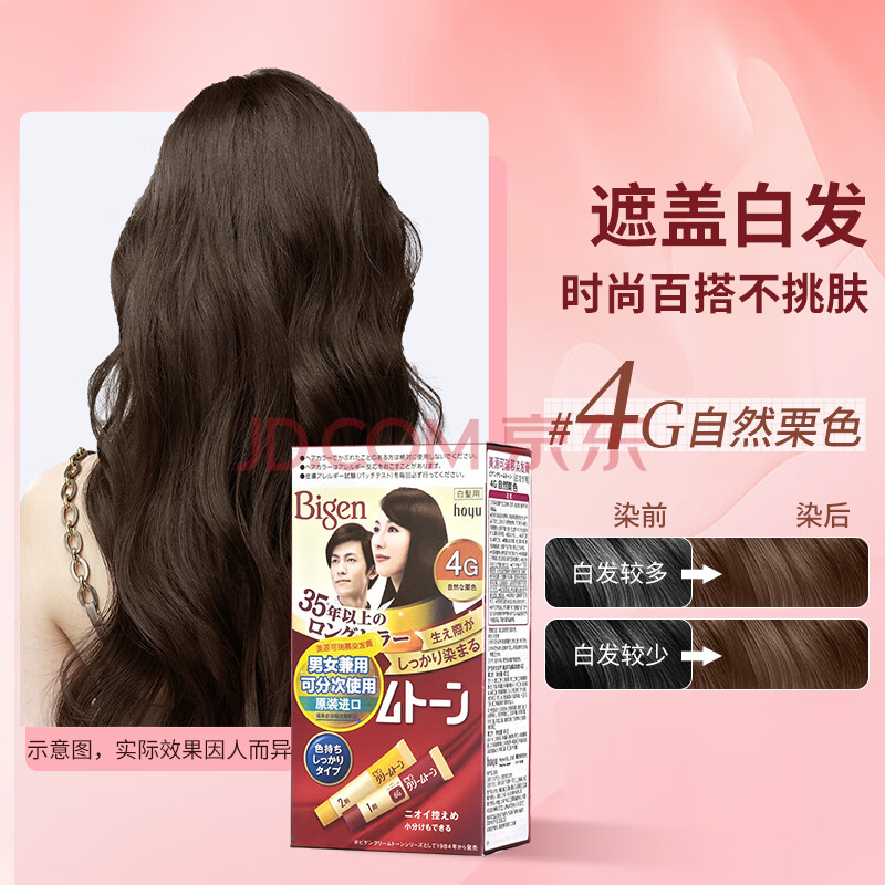 商品相册:Bigen美源进口可瑞慕染发膏 自然栗色4G 植萃盖白发染发剂固色轻松染第