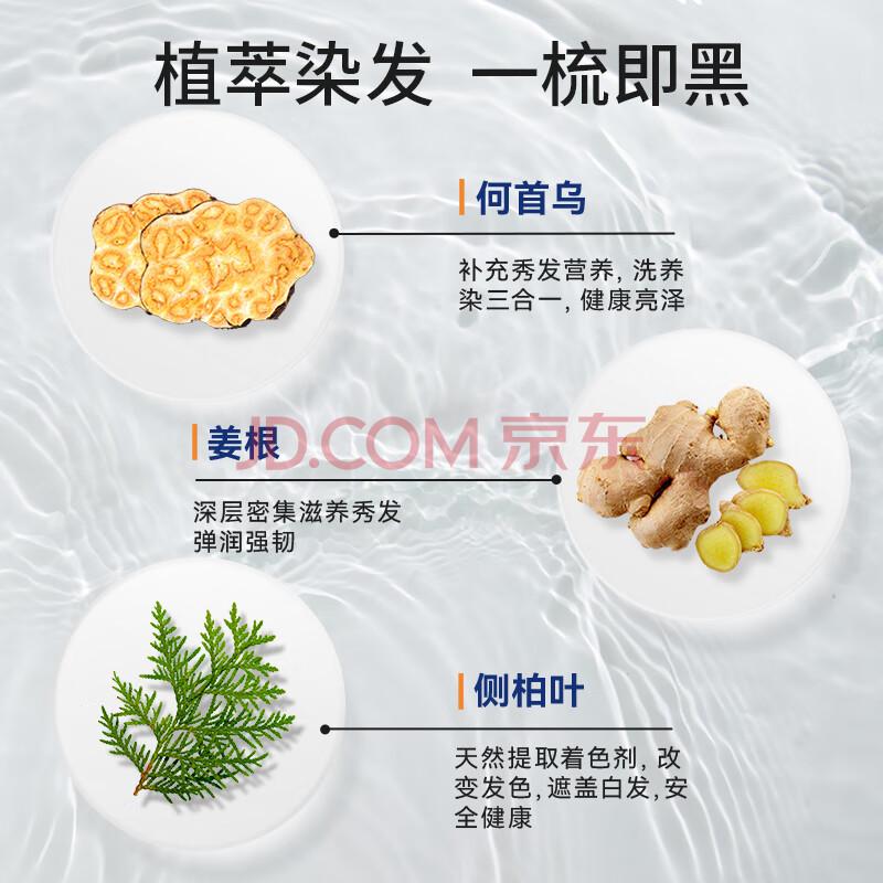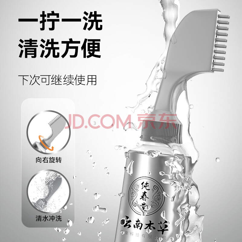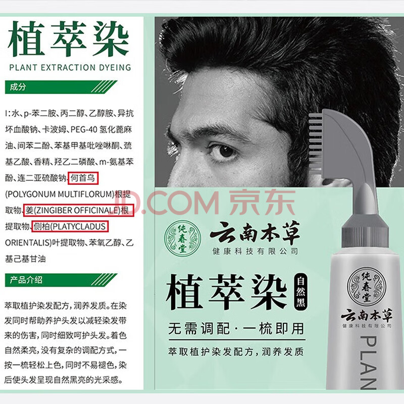 商品相册:纯春堂云南本草染发剂植物盖白头发男士染发膏纯黑无刺激不沾头皮染发梳第