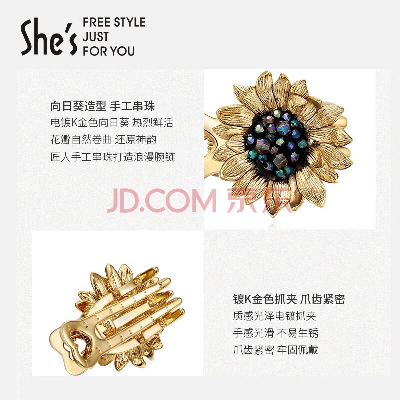 商品相册:She's茜子发饰梵高向日葵矿彩仿水晶捏夹发夹时尚发卡生日礼物送女友第