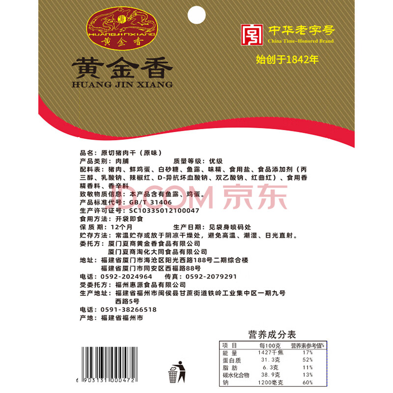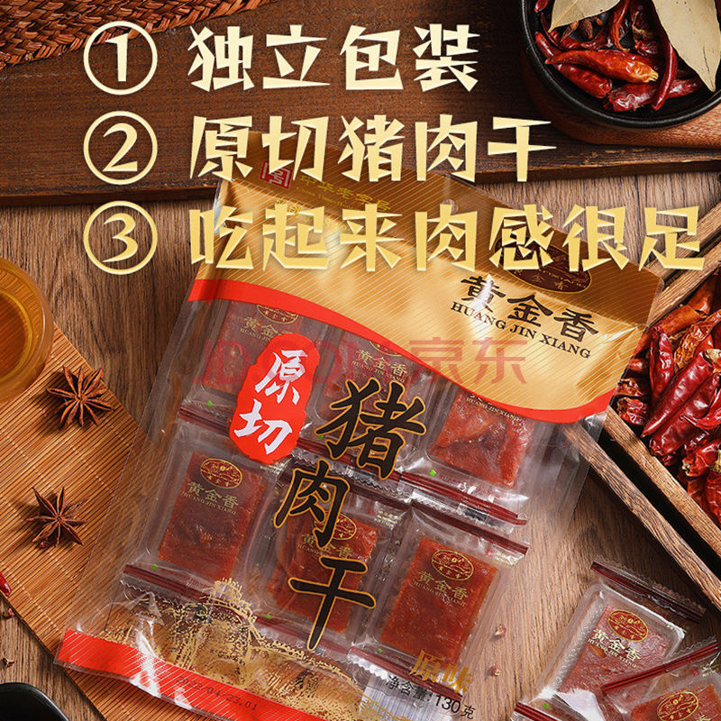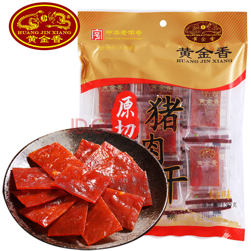 商品相册:黄金香高端原切猪肉干130g非肉糜脯 中华老字号 猪肉脯 休闲肉类零食品第