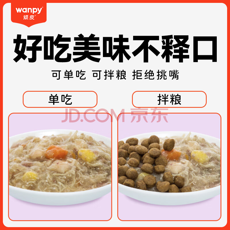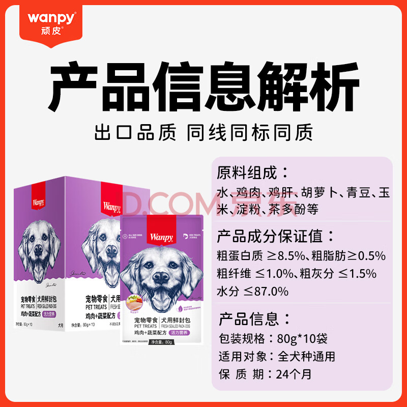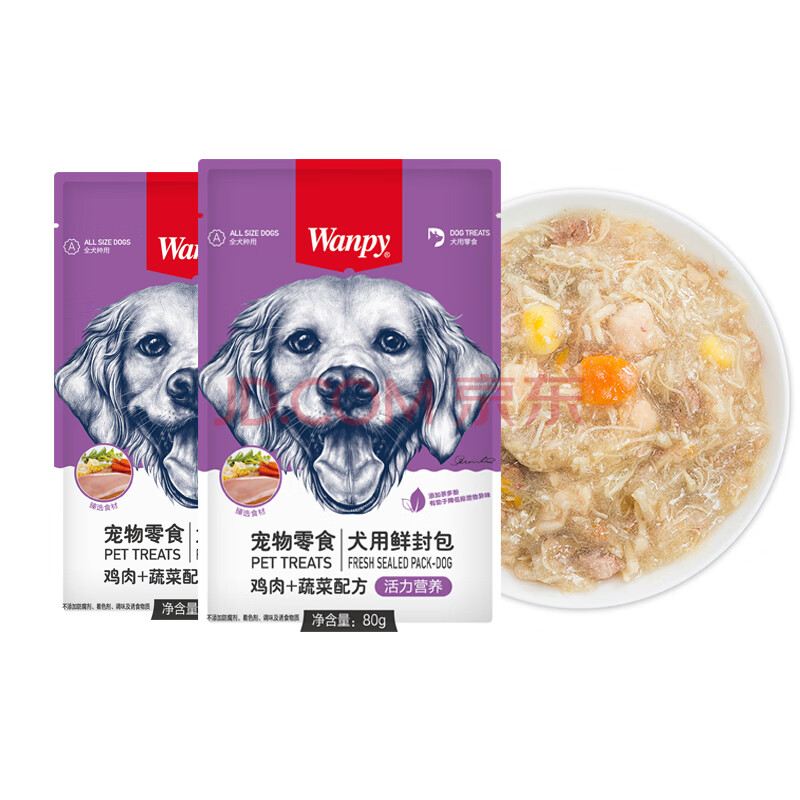 商品相册:顽皮宠物狗零食鸡肉蔬菜鲜封包80g*10袋整盒装狗粮狗湿粮狗罐头第
