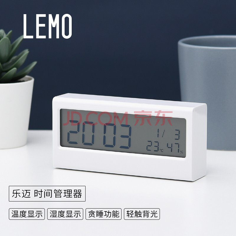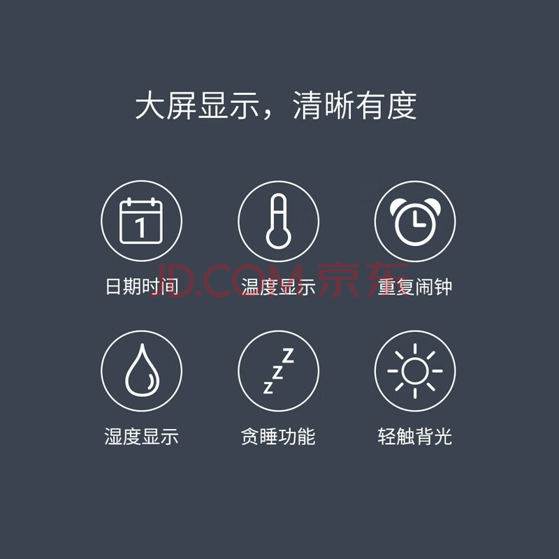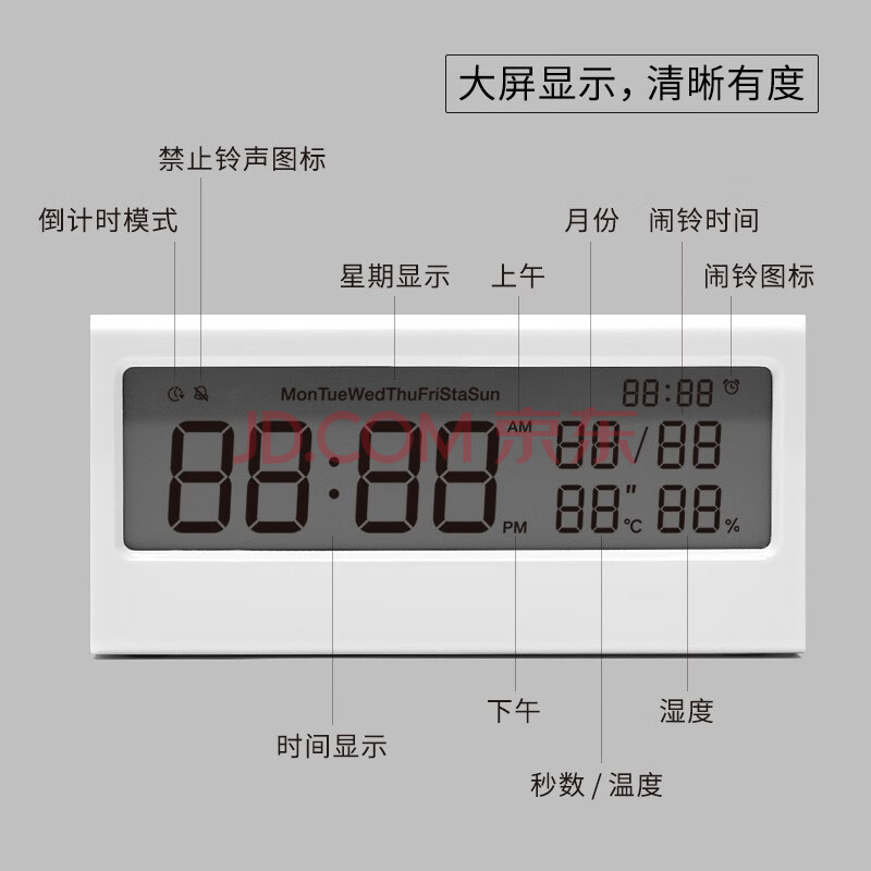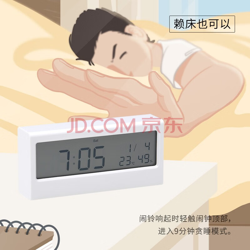 商品相册:KACO乐迈智能电子闹钟创意儿童学生用夜光大屏幕大数字温湿度显示多功能白色K1422第