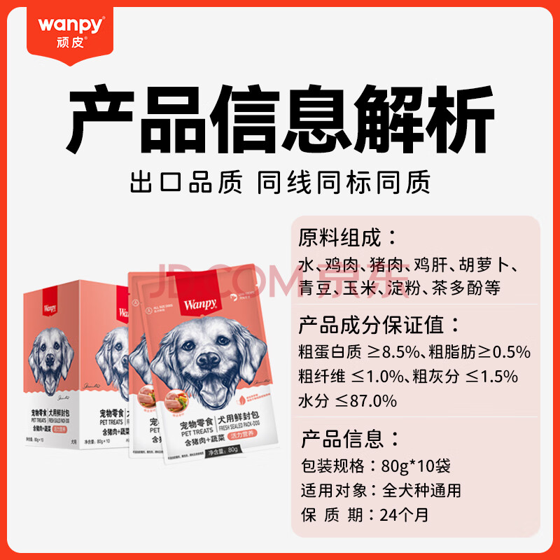 商品相册:顽皮活力营养狗零食狗湿粮猪肉&蔬菜鲜封包狗粮80g*10袋整盒装第