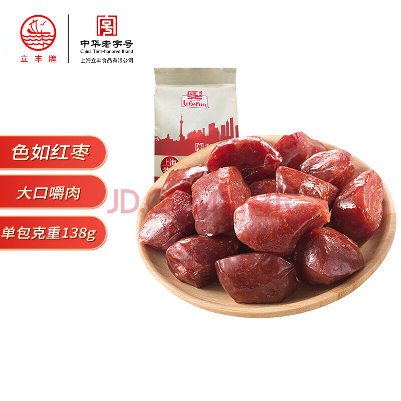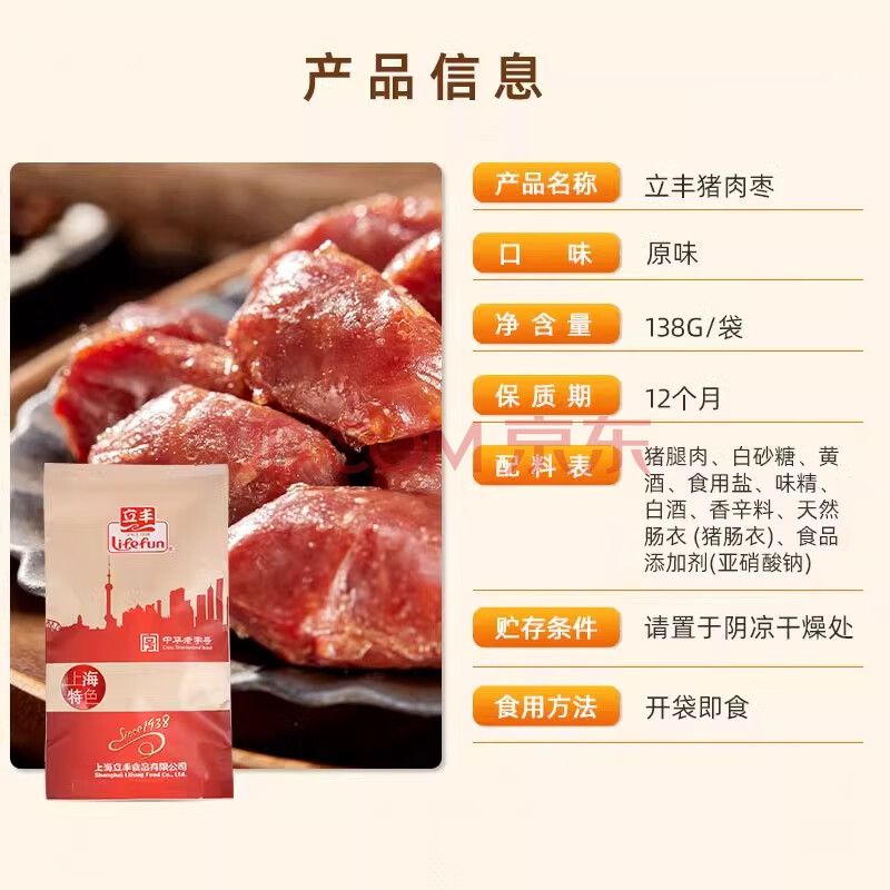 商品相册:立丰(lifefun)猪肉枣138g袋装中华老字号上海特产休闲零食猪肉类迷你小香肠烤肠第