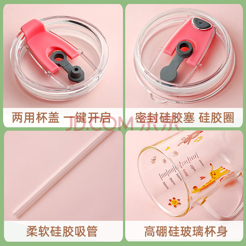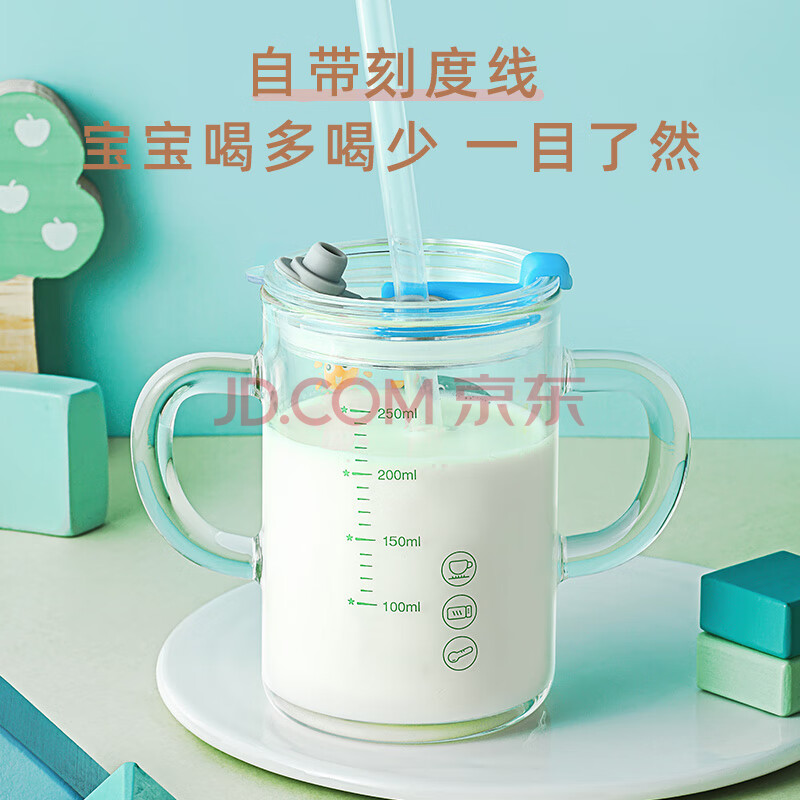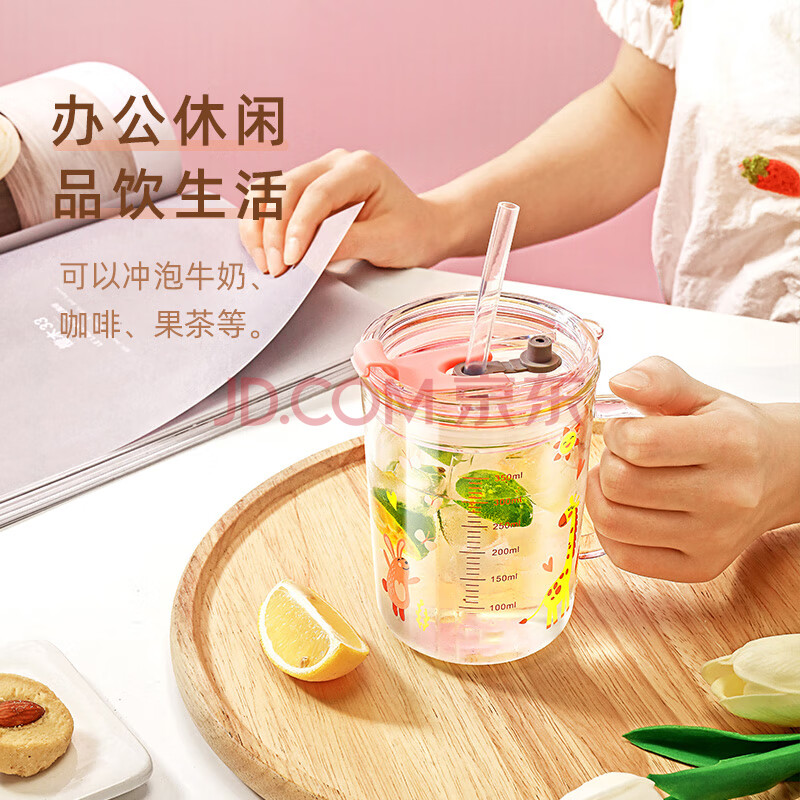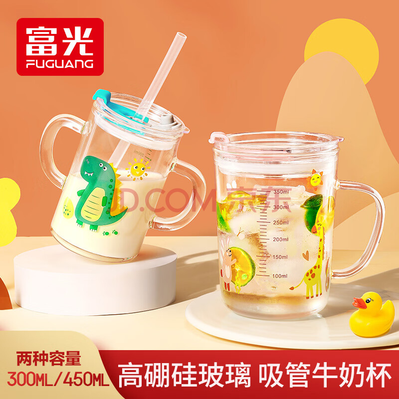 商品相册:富光玻璃杯家用儿童牛奶杯子带刻度吸管水杯男女宝宝冲泡奶粉杯带把手第