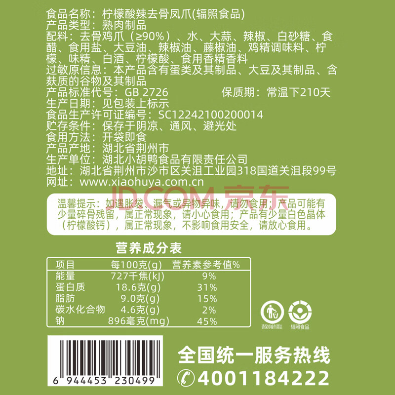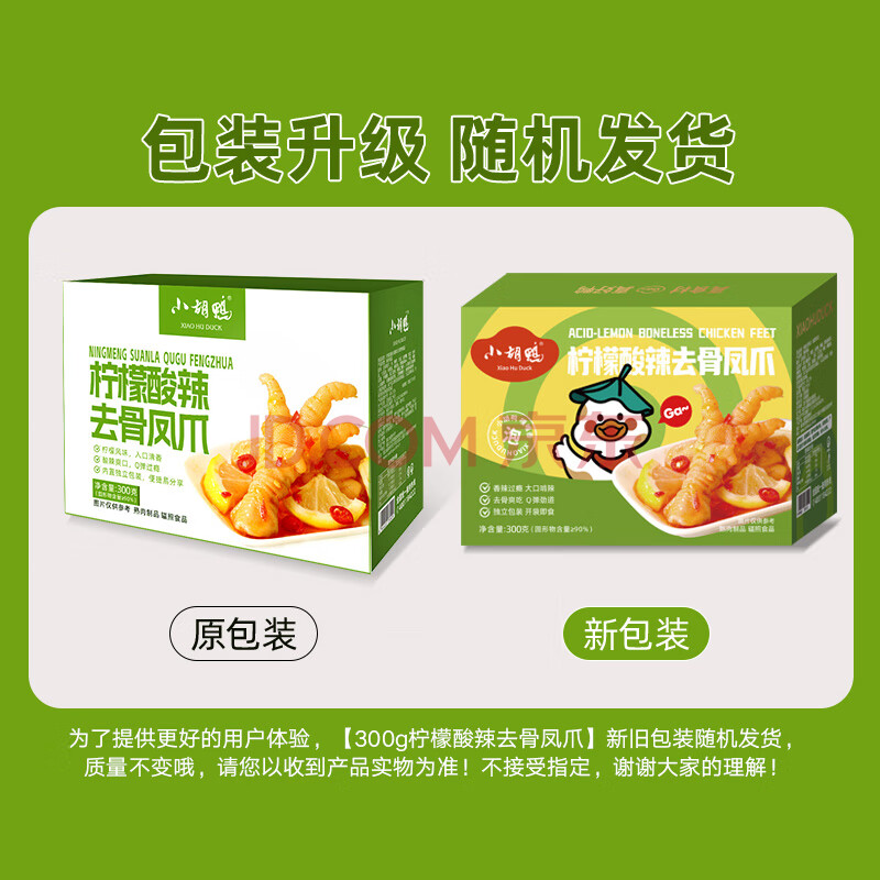 商品相册:小胡鸭柠檬酸辣去骨凤爪300g无骨鸡爪脱骨休闲零食卤味食品礼盒第
