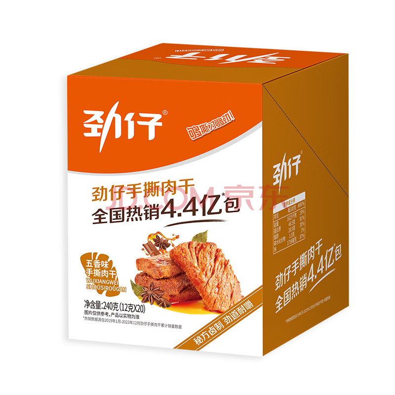 商品相册:劲仔 手撕肉干 休闲零食 鸭肉干 五香味 12g*20包第