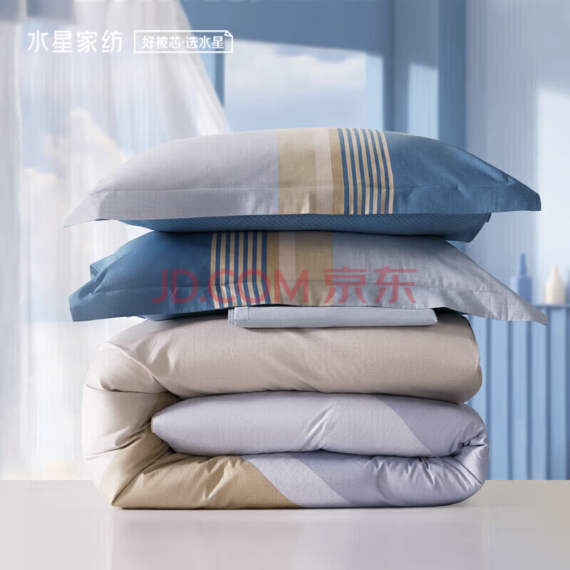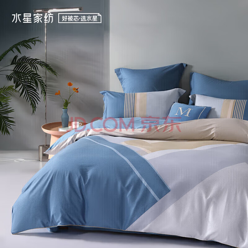 商品相册:水星家纺四件套床上纯棉100%全棉透气床单被套双人1.8米x2米床费洛格家居馆第