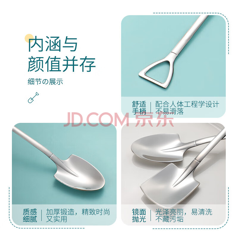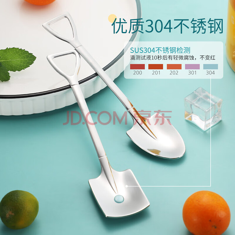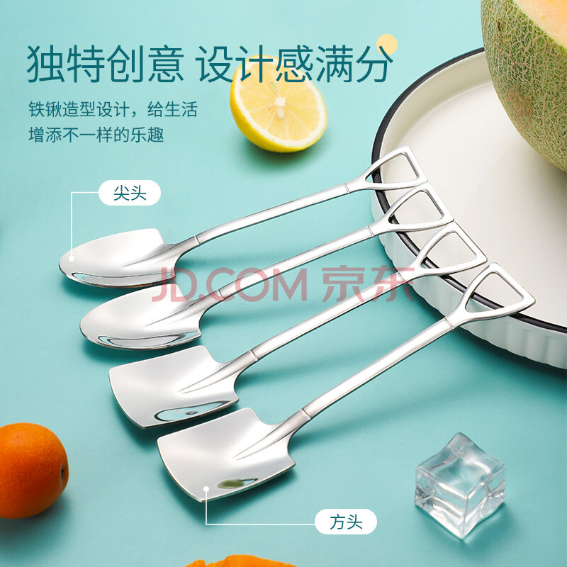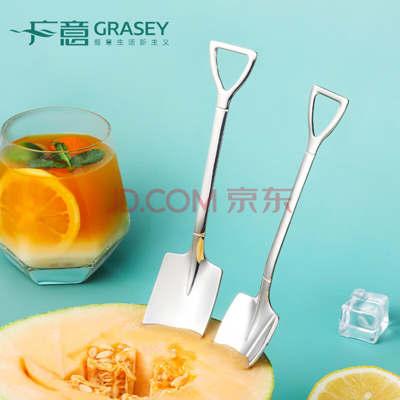 商品相册:广意 304不锈钢西瓜勺雪糕勺 创意铁锹勺 咖啡甜品勺子2支装GY7727第
