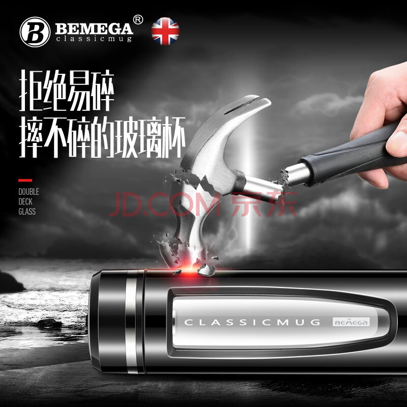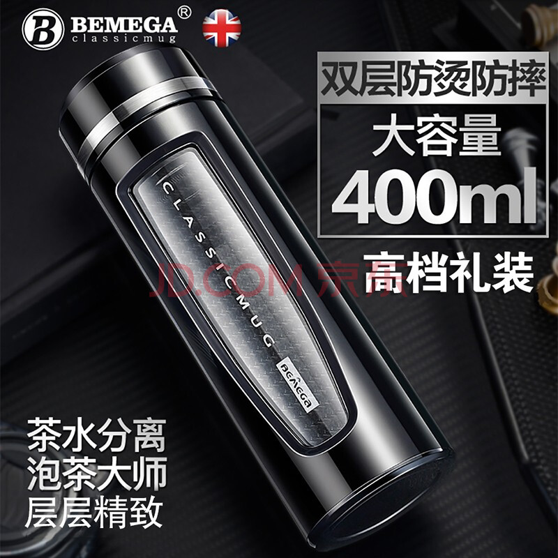 商品相册:BEMEGA英国双层玻璃杯加厚耐热防爆耐高温大容量水杯子男女士防摔泡茶杯第