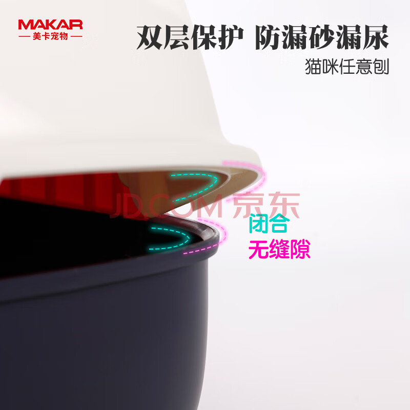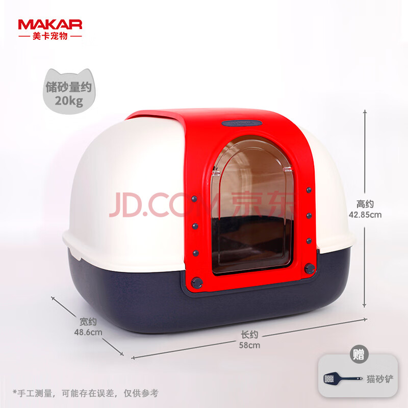 商品相册:美卡时尚龙门客栈全封闭猫砂盆 特大号双翻盖猫厕所隔臭防外溅正红色第