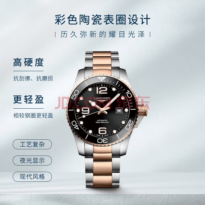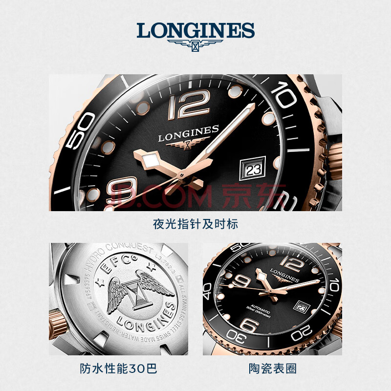 商品相册:浪琴(LONGINES)瑞士手表 康卡斯潜水系列 男士钢带机械表L37823587第