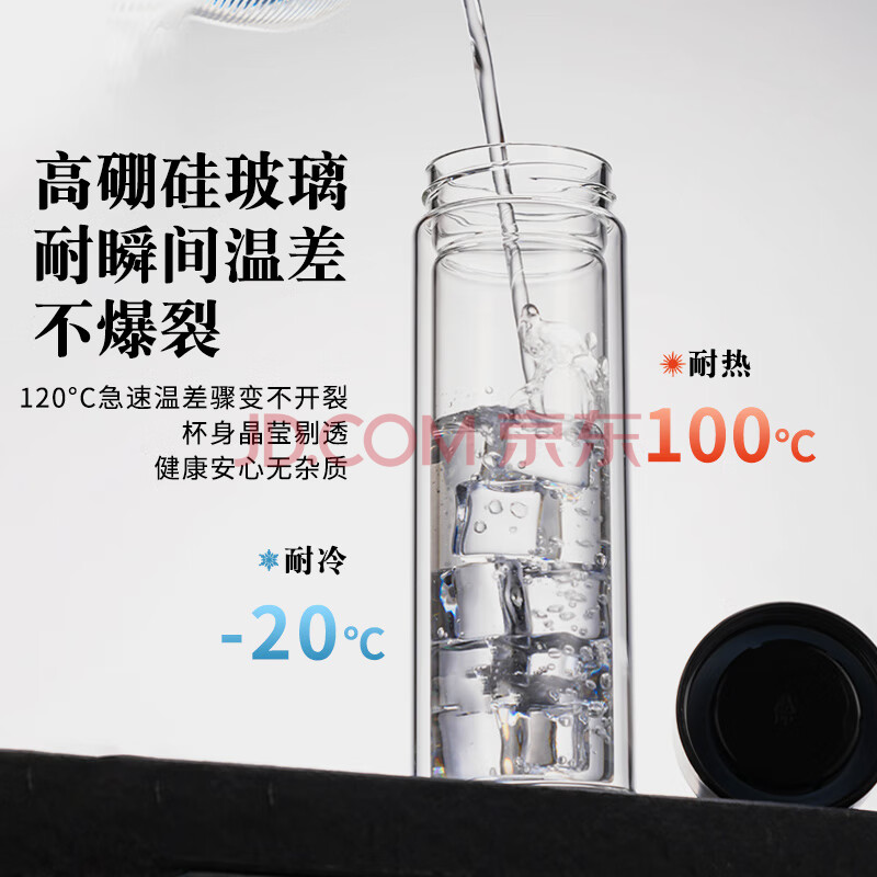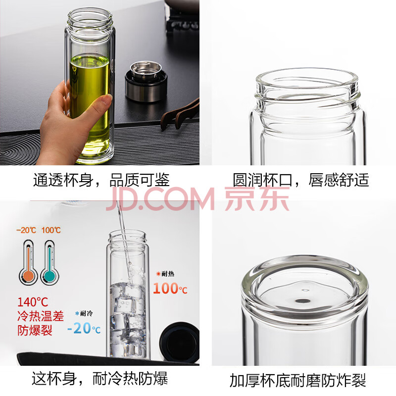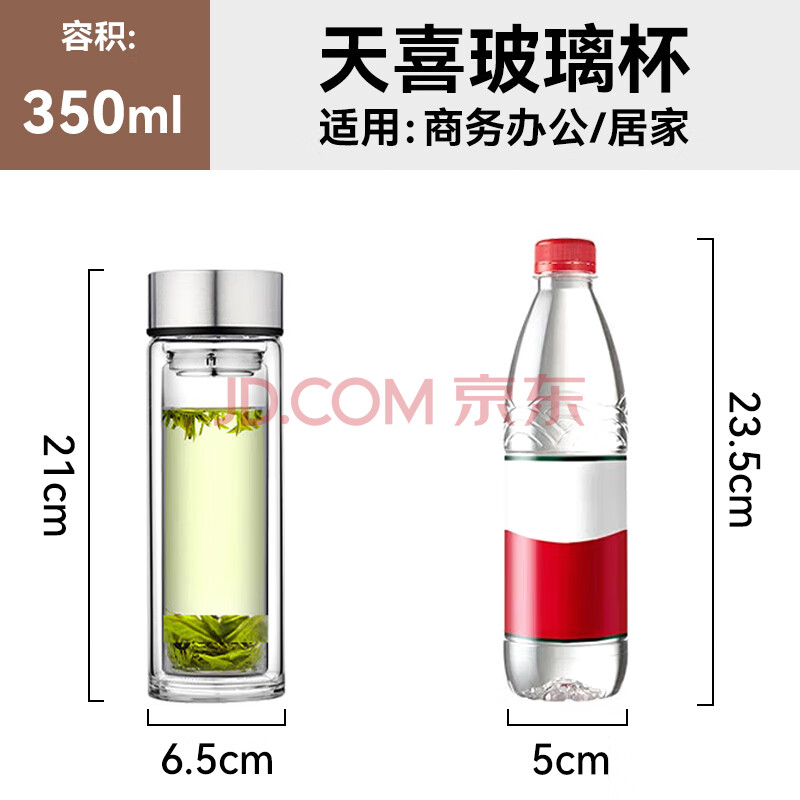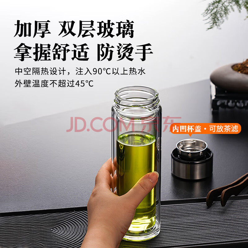 商品相册:天喜(TIANXI)玻璃杯双层加厚水杯男女带茶隔泡茶杯大容量本色350ml礼物第
