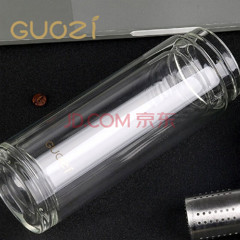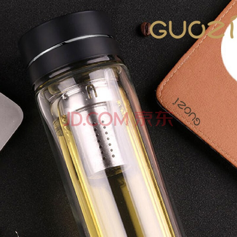 商品相册:果兹(GUOZI) GZ-S55-320 朗仕双层玻璃杯 简约商务风便携式泡茶杯过滤隔热办公水杯冷水杯子 320ml 单个装第