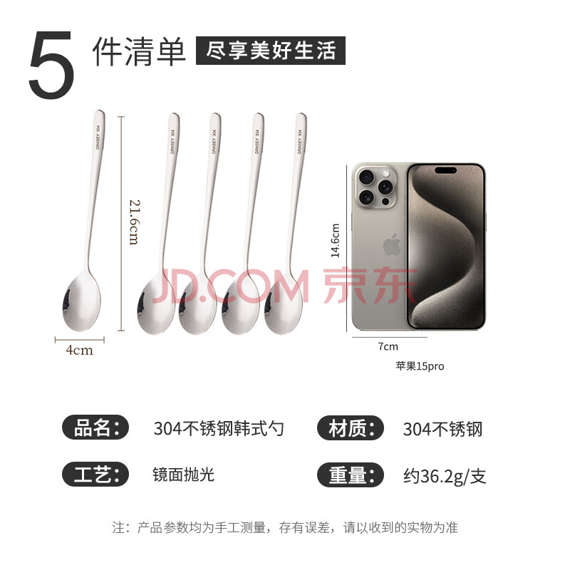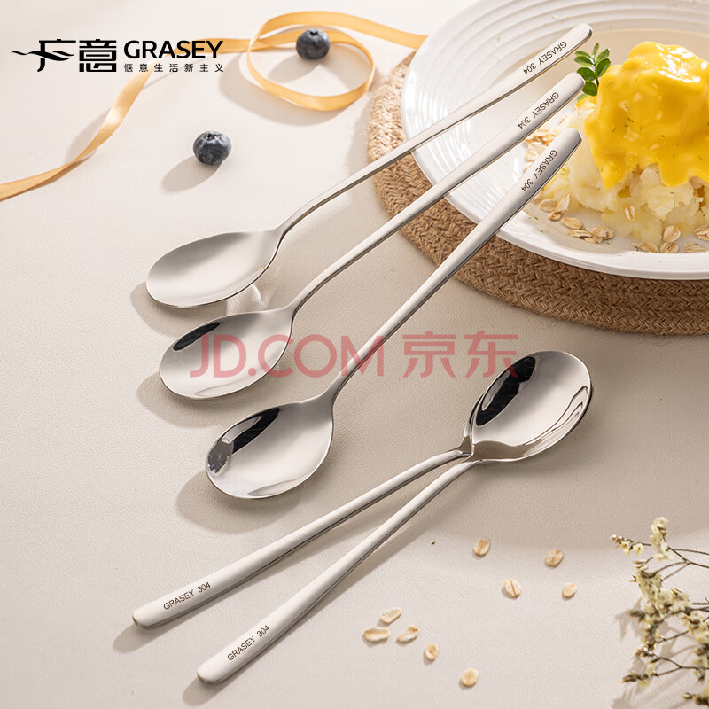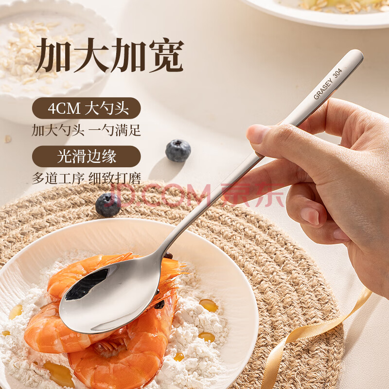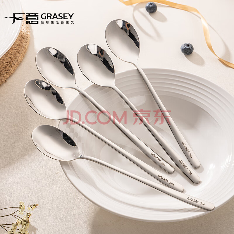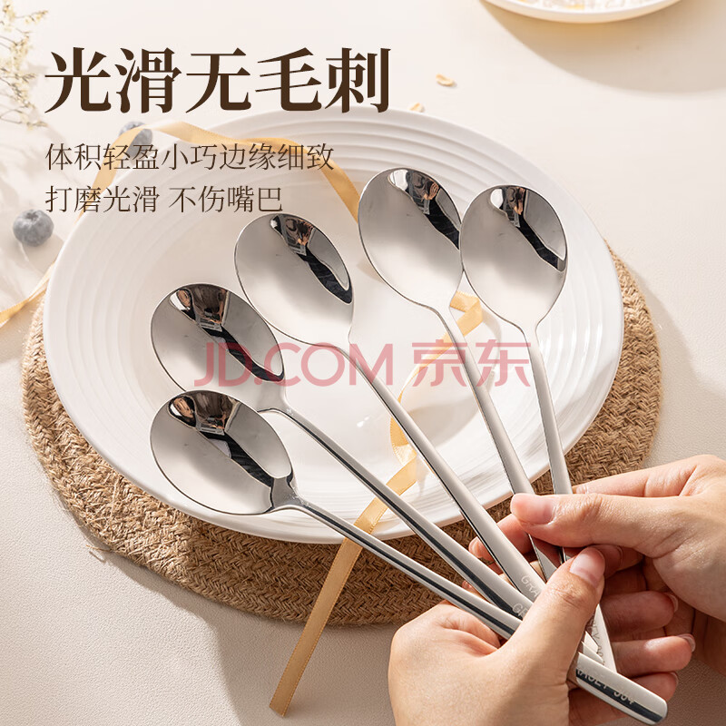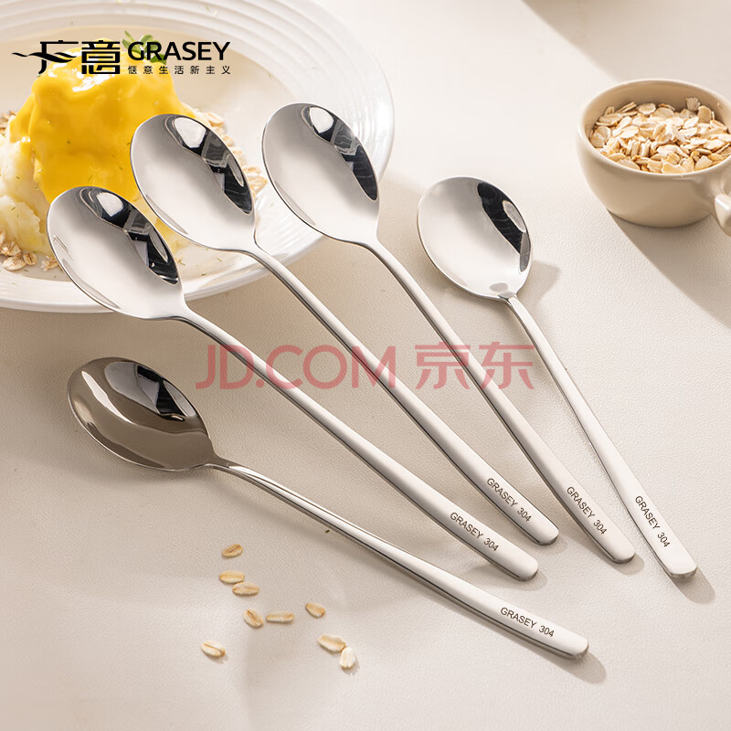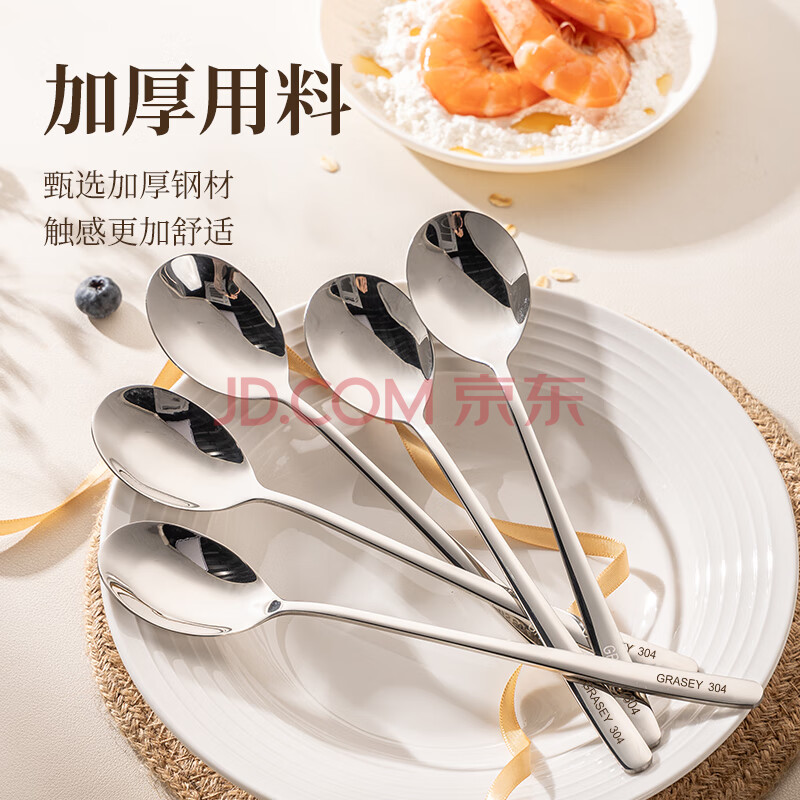 商品相册:广意304不锈钢勺子吃饭汤勺汤匙 家用餐勺长柄调羹大号5只装GY7583第