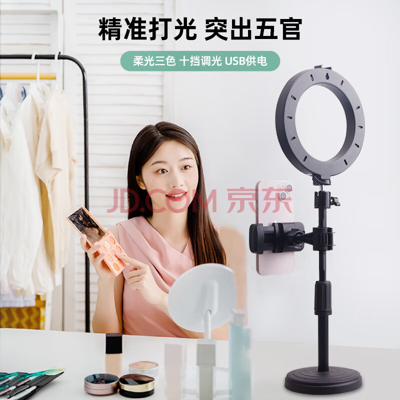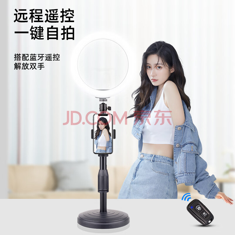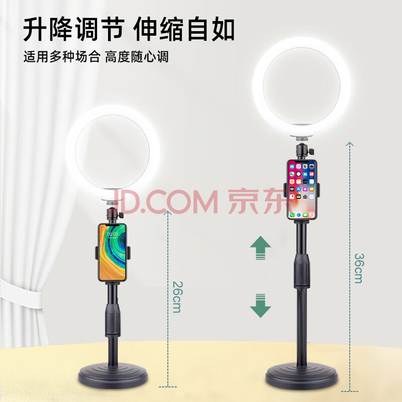 商品相册:徕兹 手机支架桌面直播补光灯主播美颜灯网红嫩肤打光灯抖音视频录制多功能可升降伸缩单机位手机架第