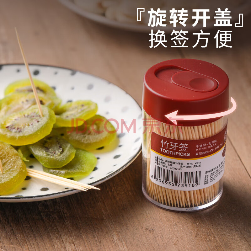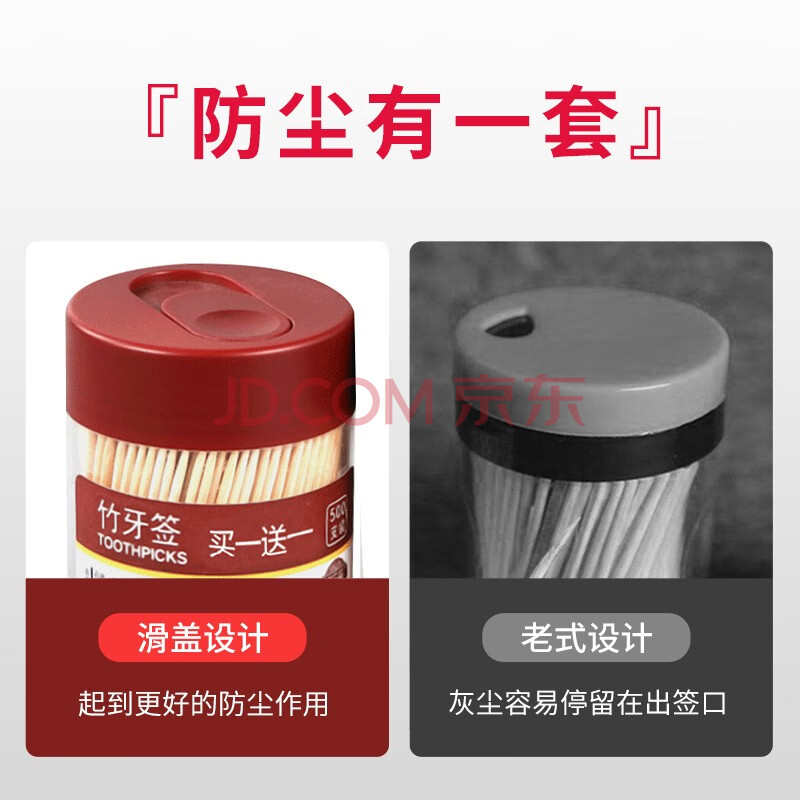 商品相册:唐宗筷 一次性牙签1000支 黑+红简约2罐装 家用双头尖竹牙签C6229第