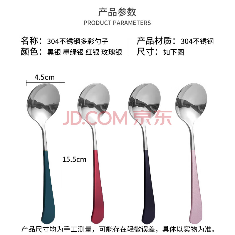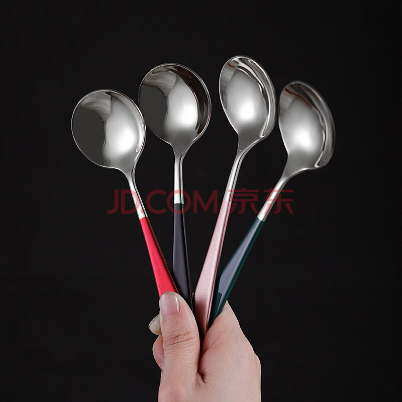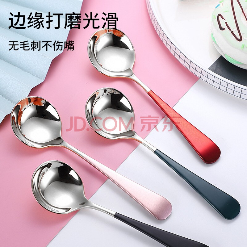 商品相册:拾画 304不锈钢勺子4只装 分食分餐饭勺甜品勺子调羹汤勺大圆勺第