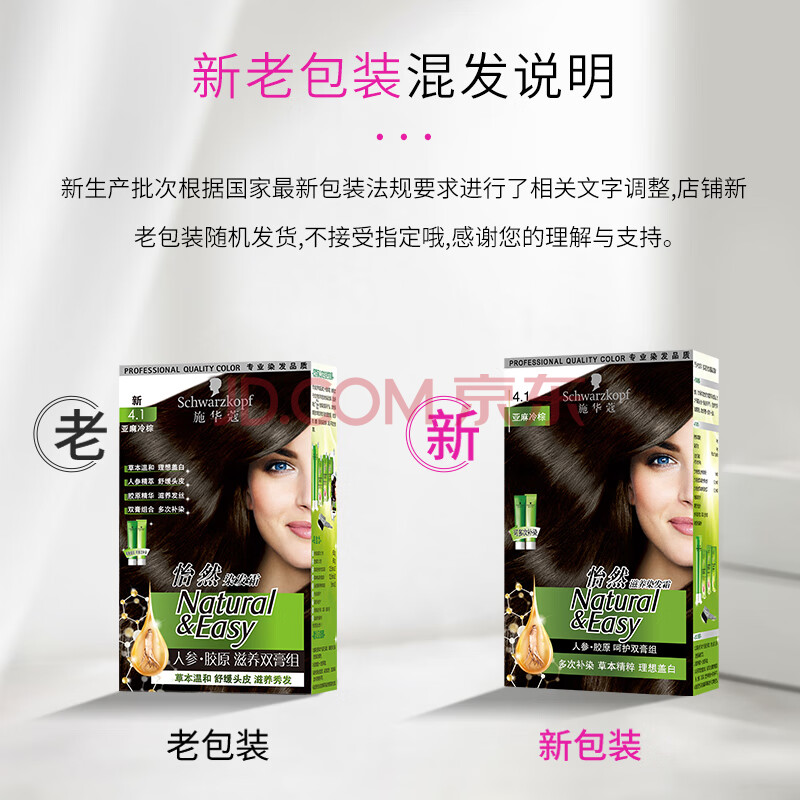 商品相册:施华蔻(Schwarzkopf)怡然滋养染发霜4.1亚麻冷棕 染发剂染发膏植物人参 多次盖白补染第