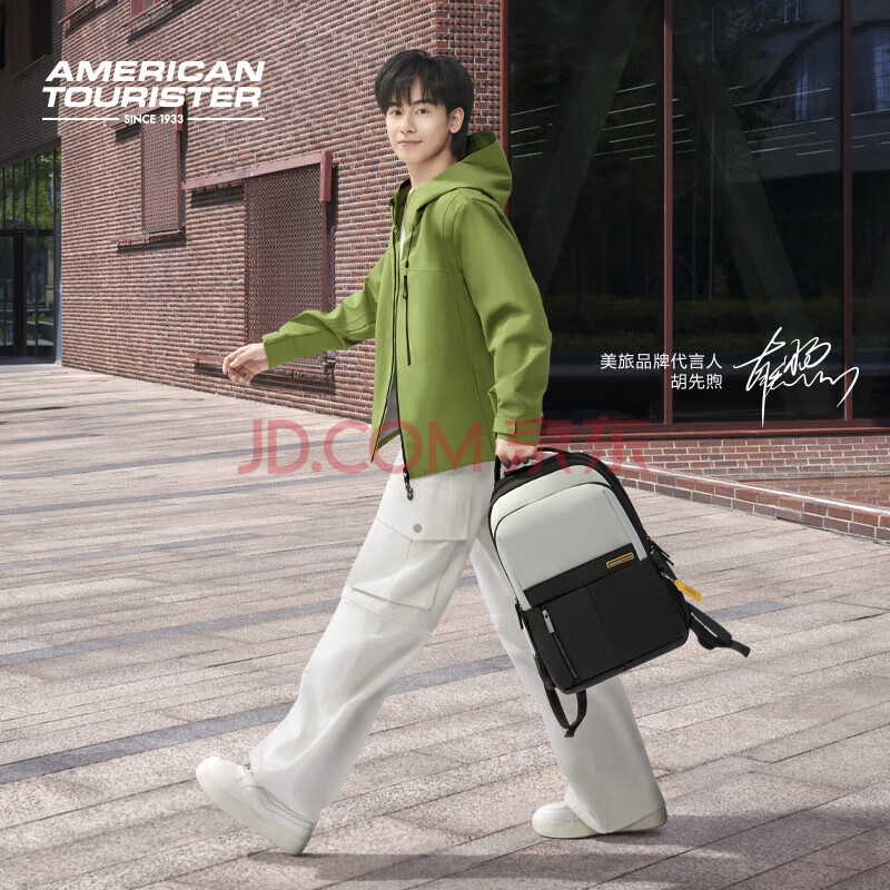 商品相册:美旅电脑包通勤双肩包男士旅行包多功能16英寸胡先煦同款背包NE2灰白第