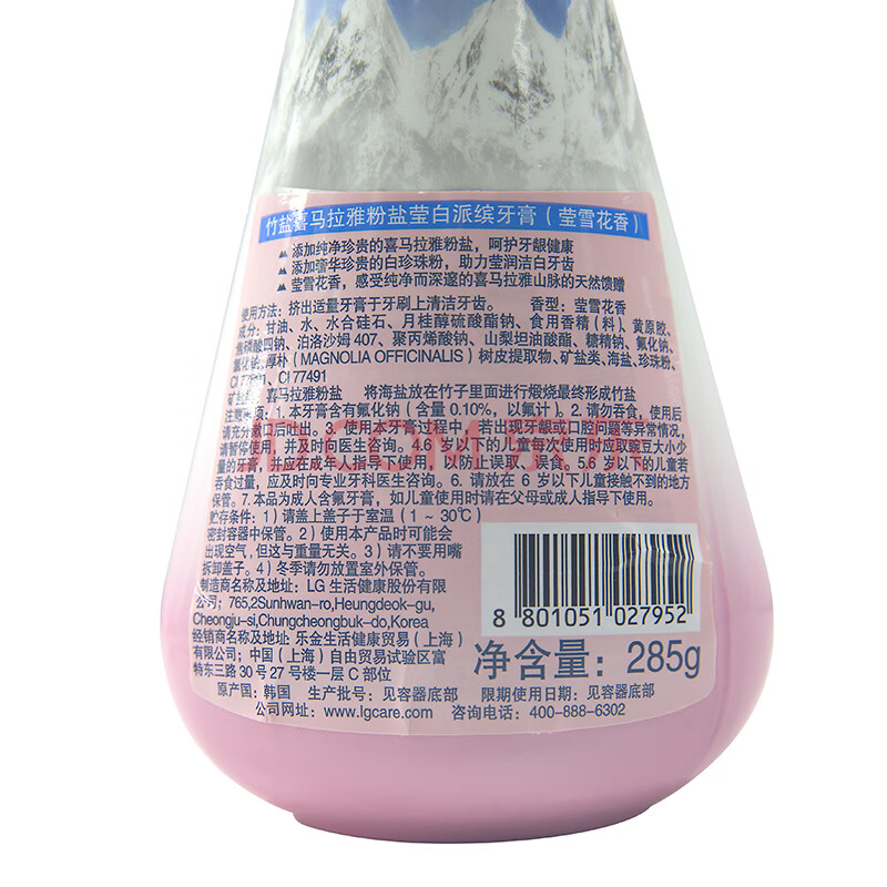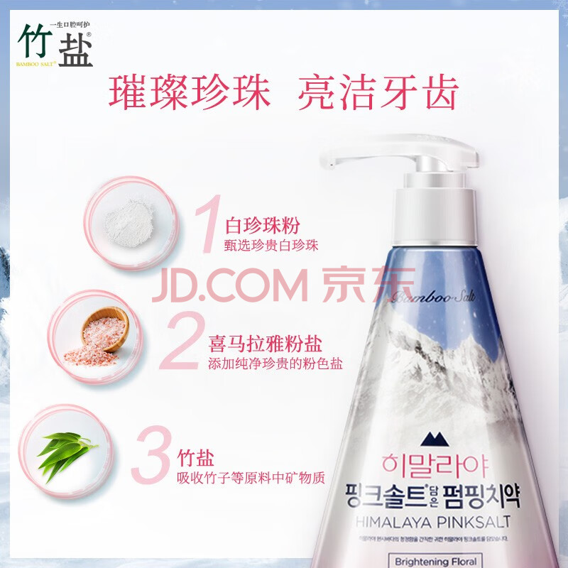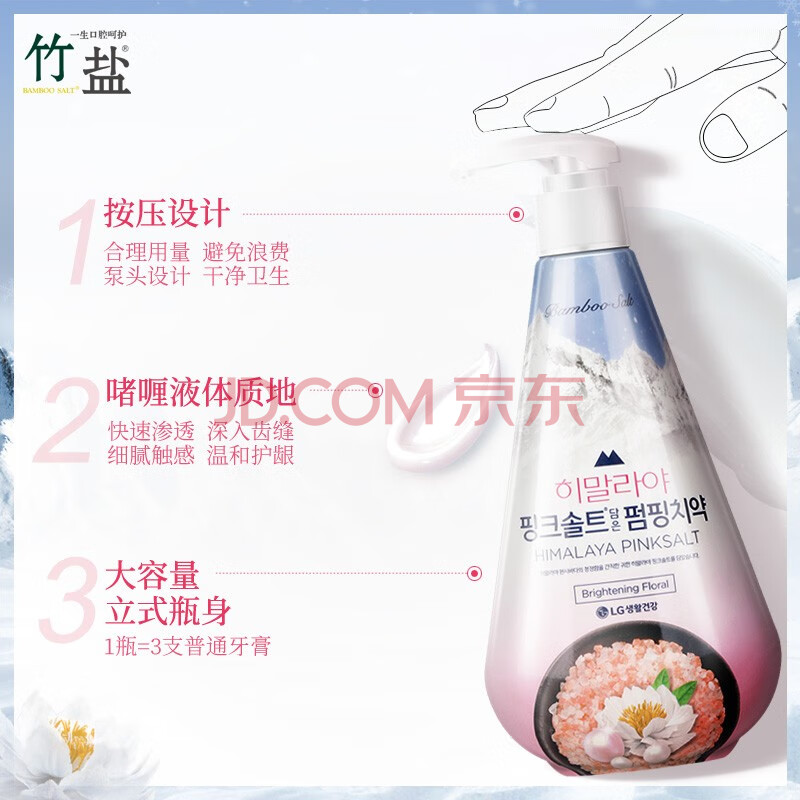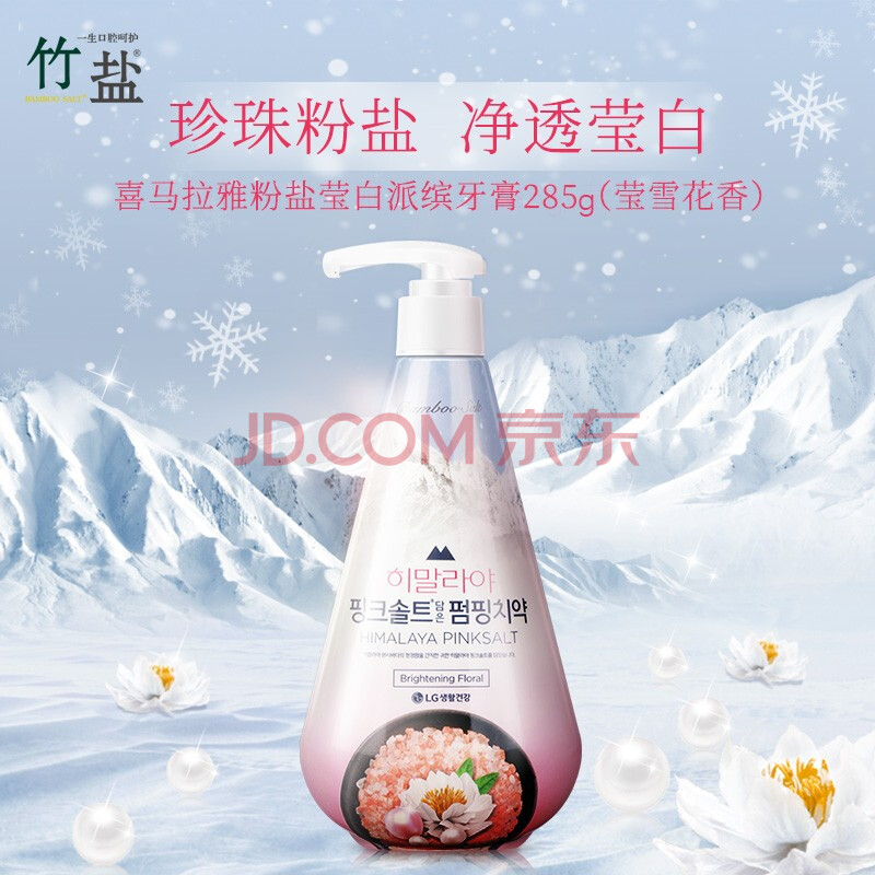 商品相册:竹盐LG派缤按压式牙膏粉盐285g*1瓶莹雪花香洁白牙齿减轻牙渍第
