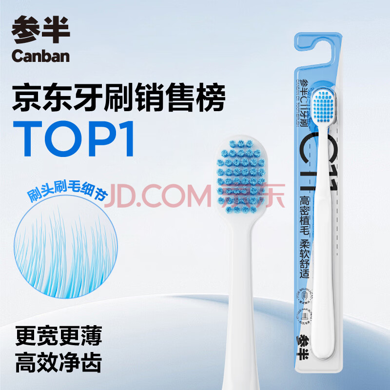 商品相册:参半C11高密植宽头软毛牙刷 护龈纤细毛牙龈清洁 1支装第
